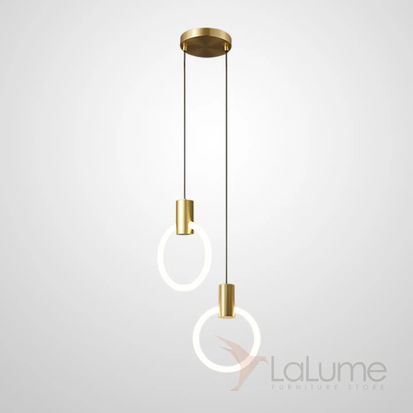 Готовая комбинация подвесных светодиодных светильников c двумя светящимися кольцами в латунном корпусе DAMON DUO Brass