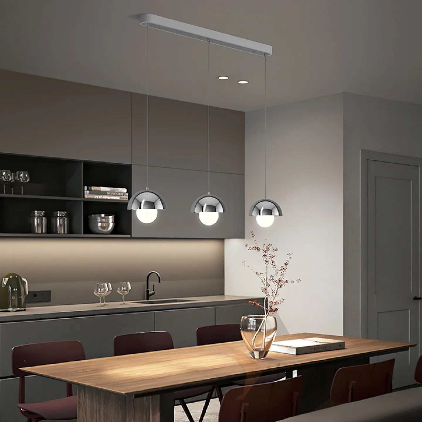 Готовая комбинация подвесных светильников c тремя шарообразными плафонами TEODOR TRIO White