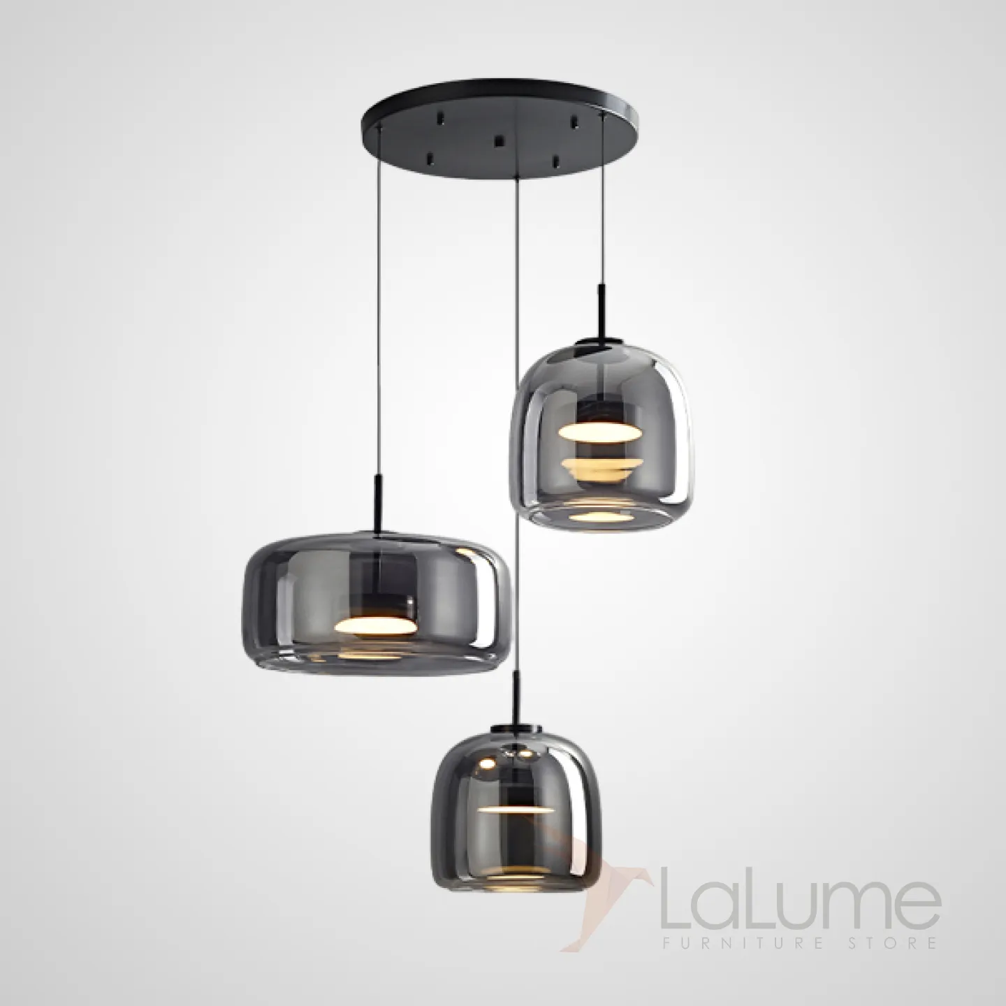 Готовая комбинация подвесных светодиодных светильников c абажурами из дымчатого и янтарного стекла NALLE TRIO D40 Grey