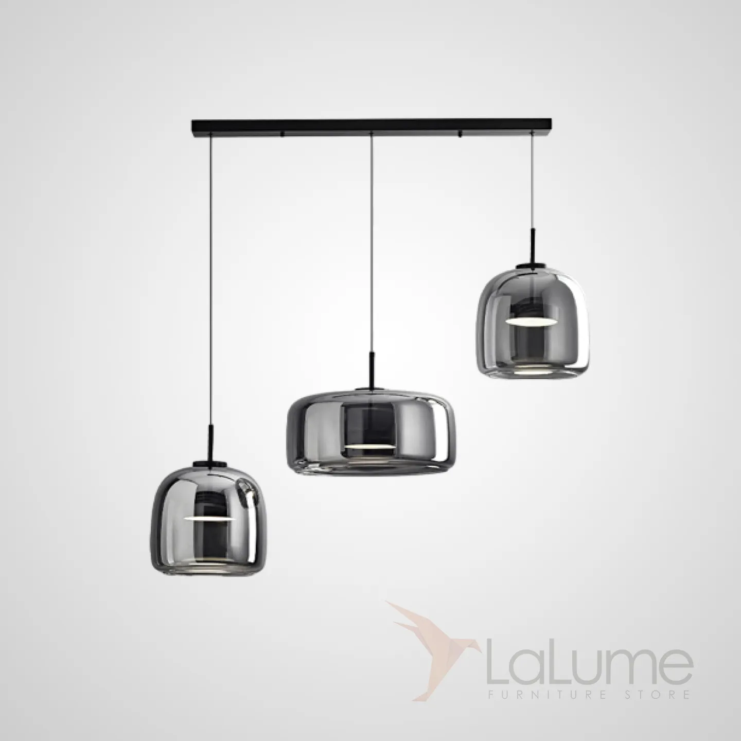 Готовая комбинация подвесных светодиодных светильников c абажурами из дымчатого и янтарного стекла NALLE TRIO L80 Grey