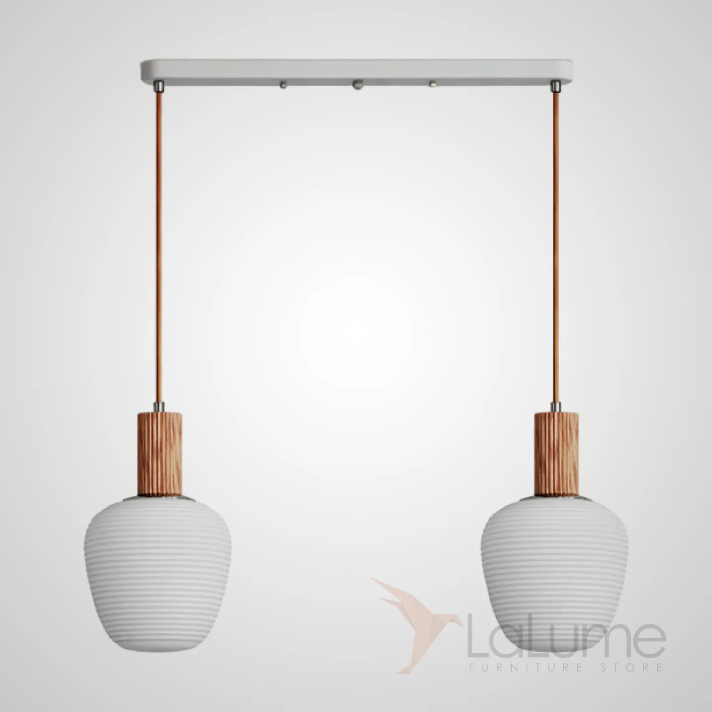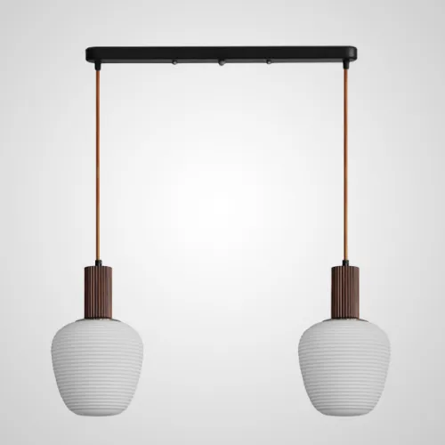 Готовая комбинация подвесных светильников c двумя плафонами из рельефного стекла с деревянной отделкой DAGFIN DUO White