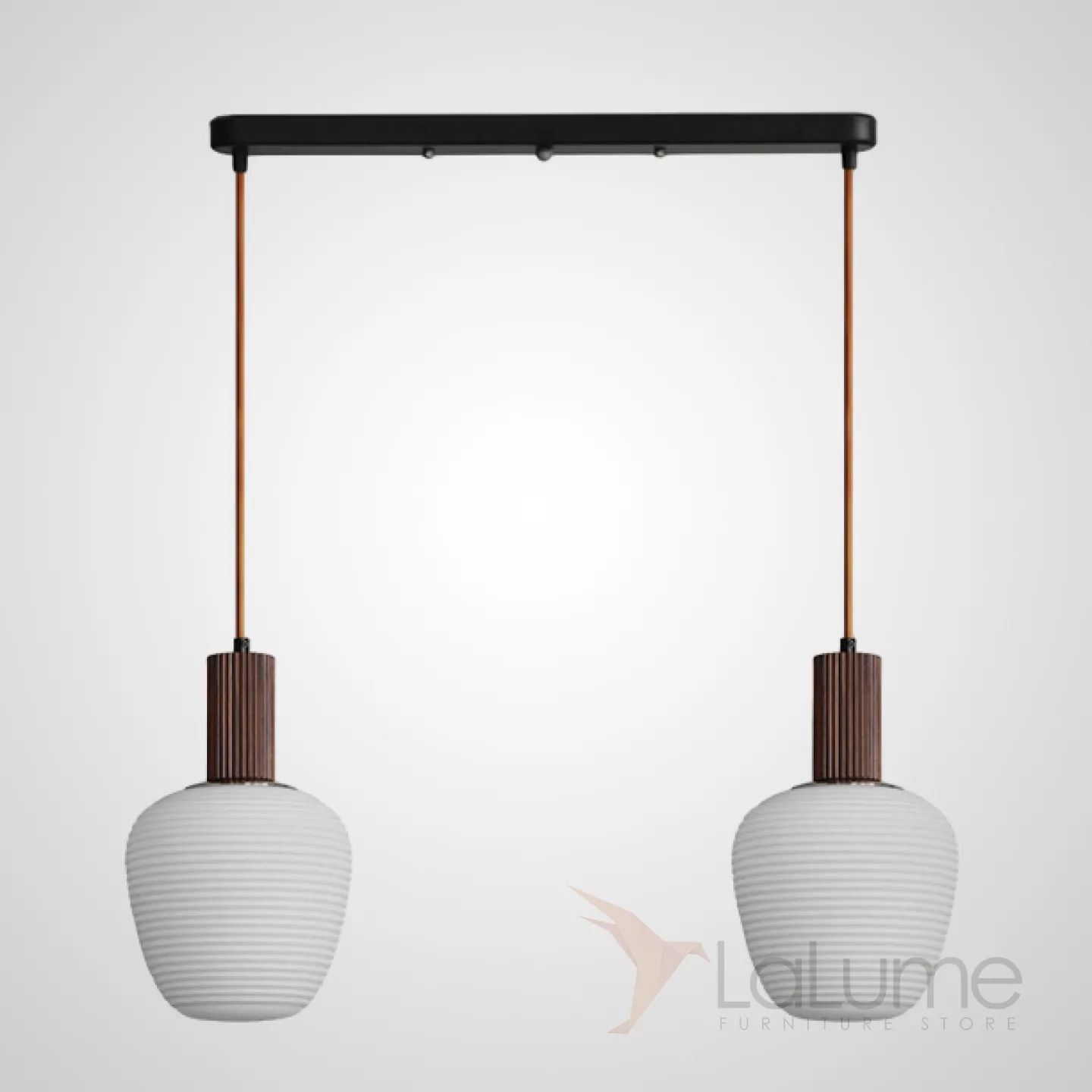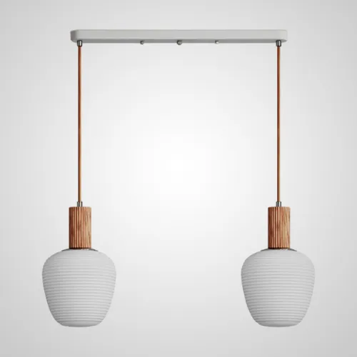 Готовая комбинация подвесных светильников c двумя плафонами из рельефного стекла с деревянной отделкой DAGFIN DUO Black