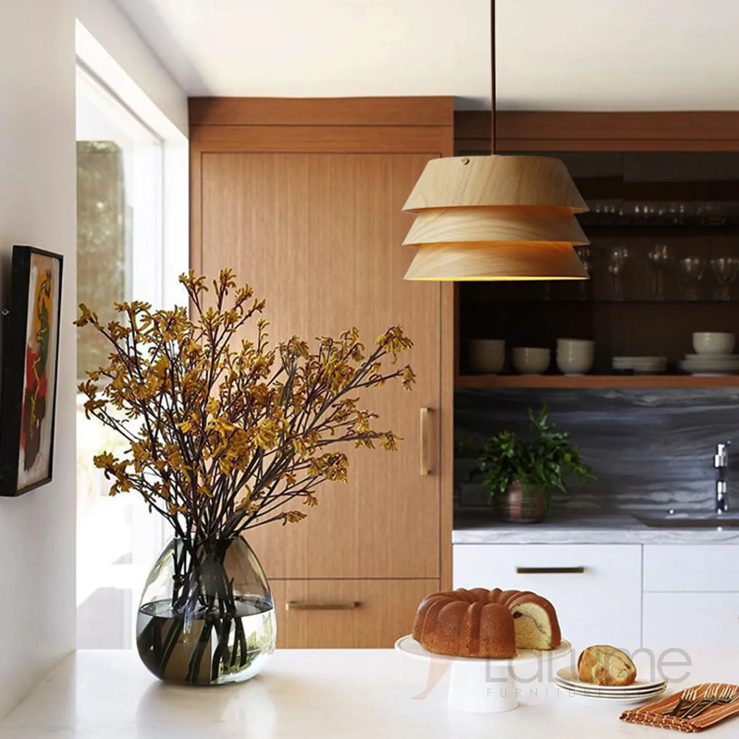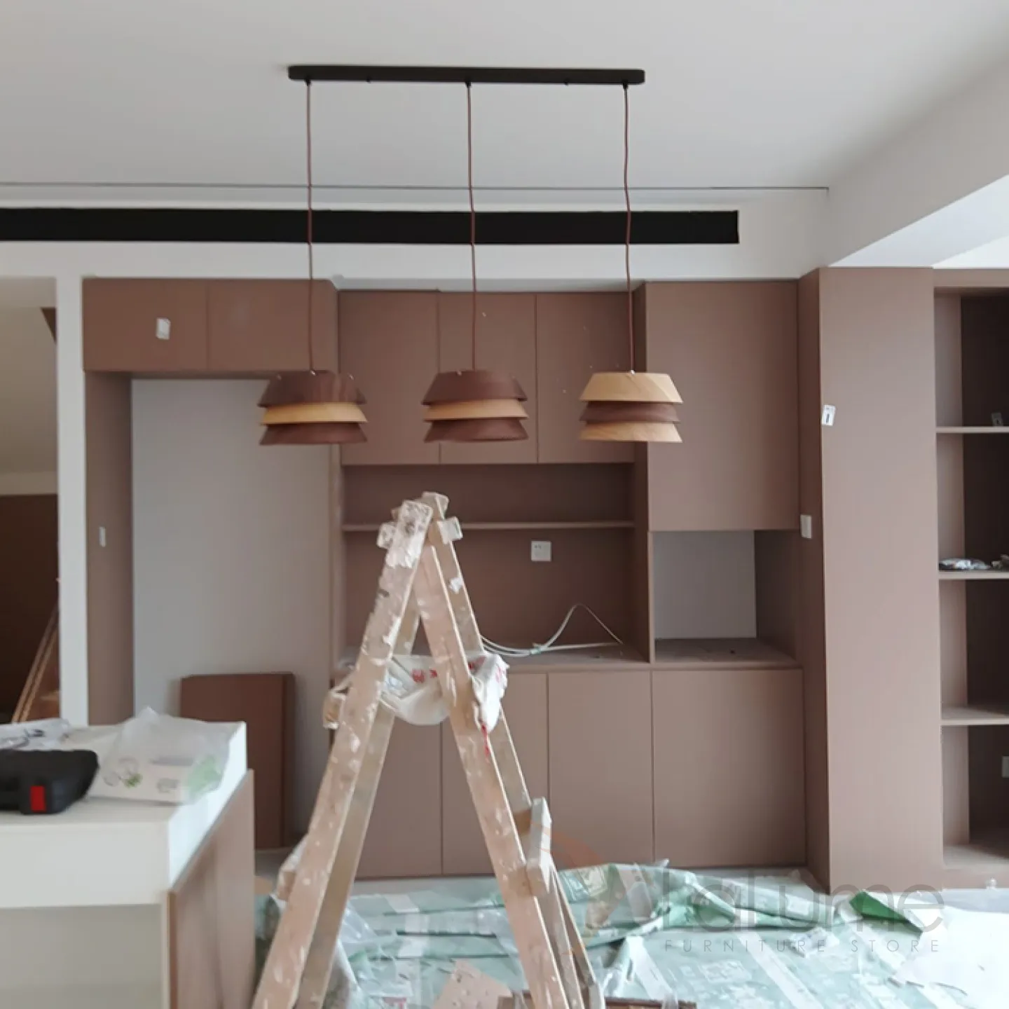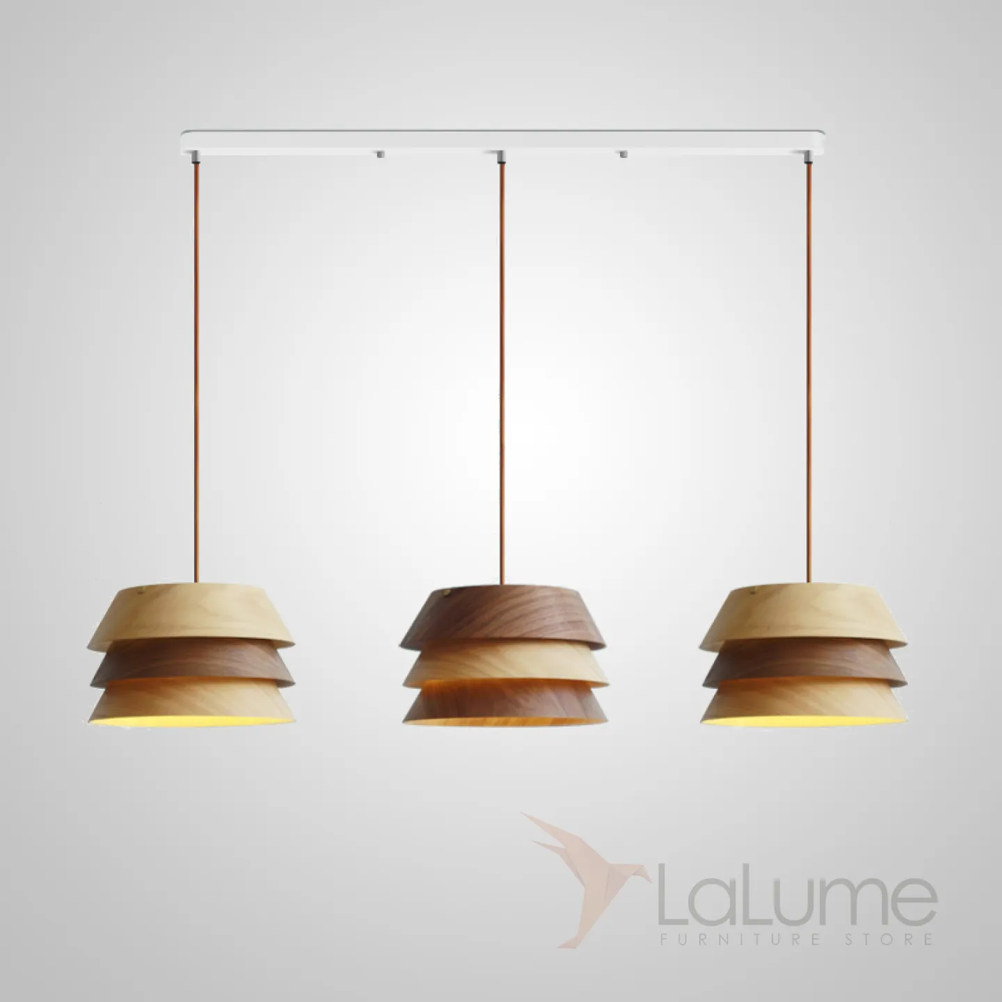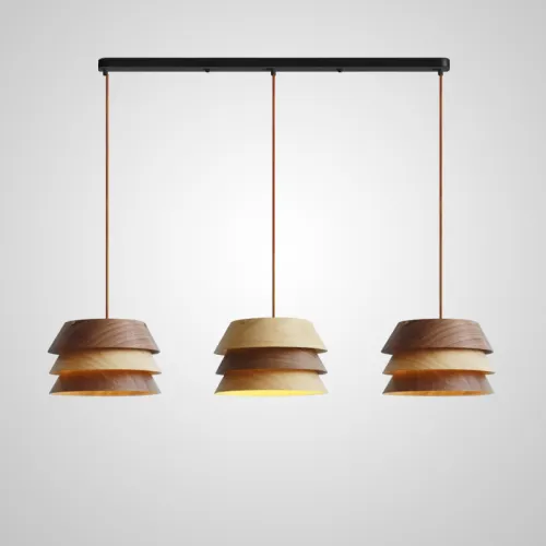 Готовая комбинация подвесных светильников c трехслойными абажурами из темного и светлого дерева BRAM COMBO L3 White