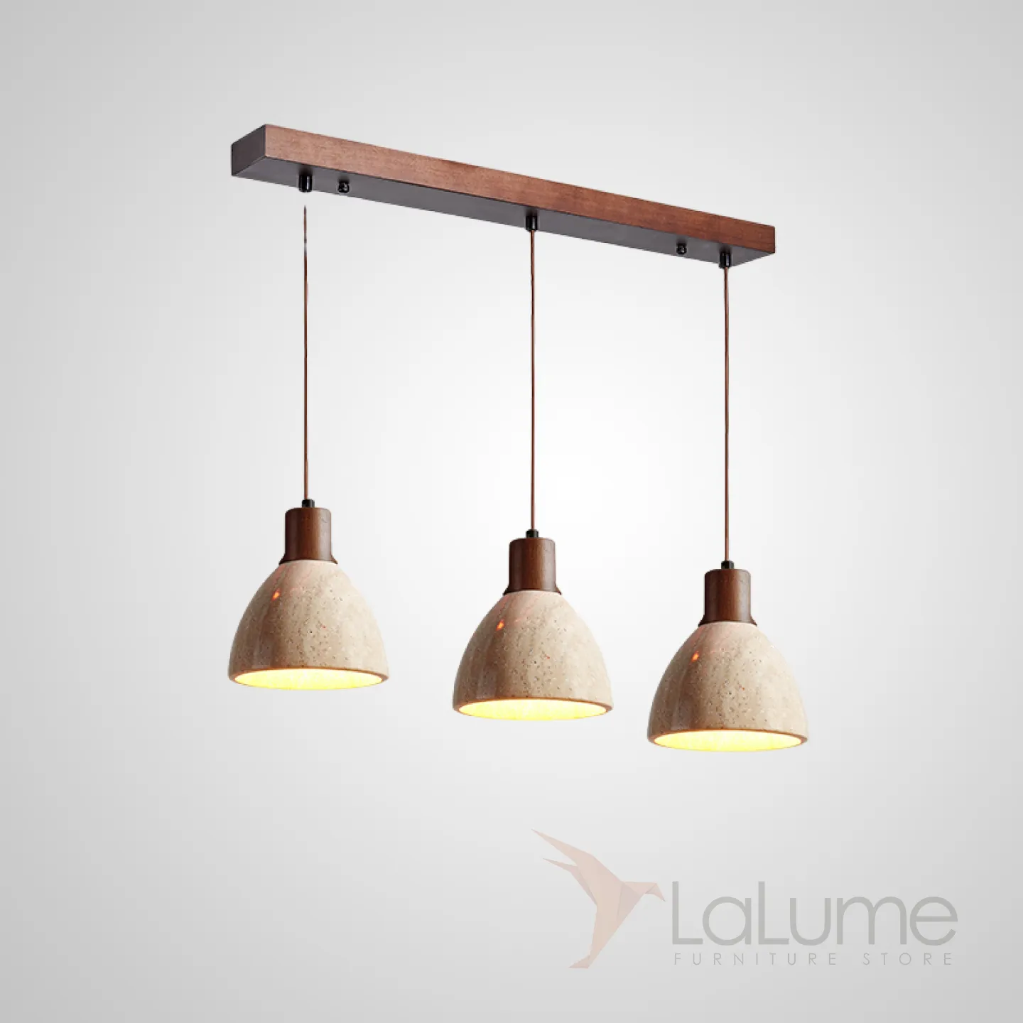 Готовая комбинация подвесных светильников с геометрическими плафонами из камня травертина с деревянной отделкой MELIUS TRIO B Dark brown Планка