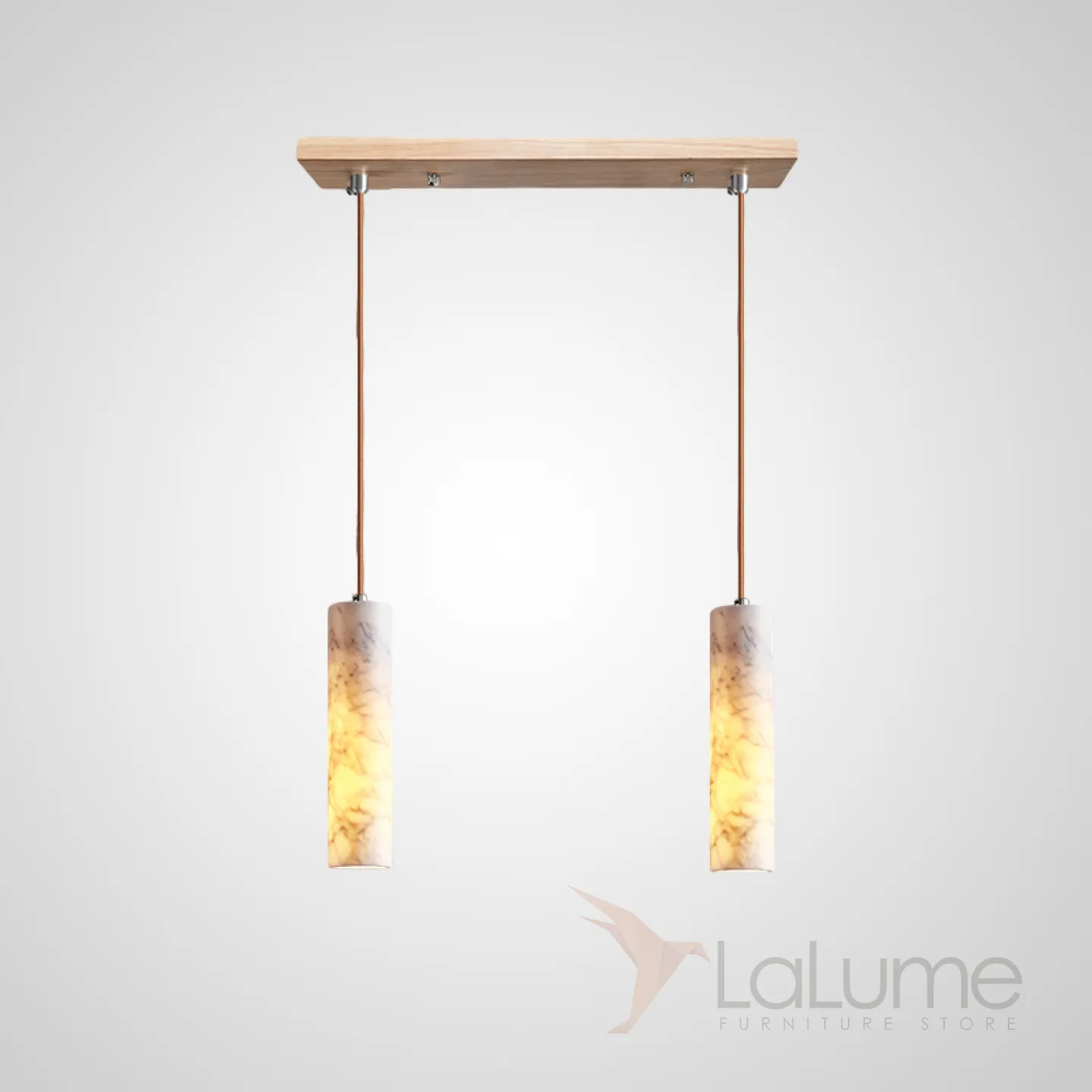 Готовая комбинация подвесных светильников с цилиндрическим корпусом из белого мрамора и деревянным креплением REOR COMBO A L2 Планка