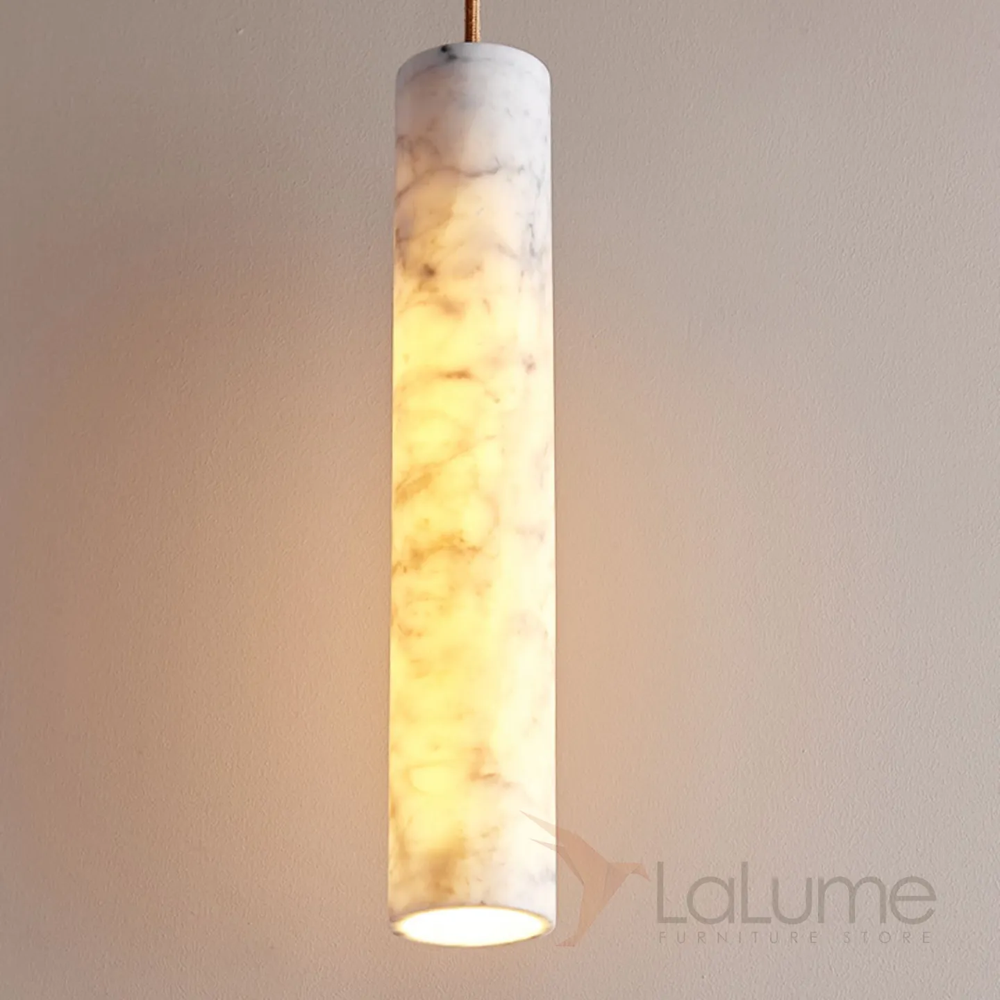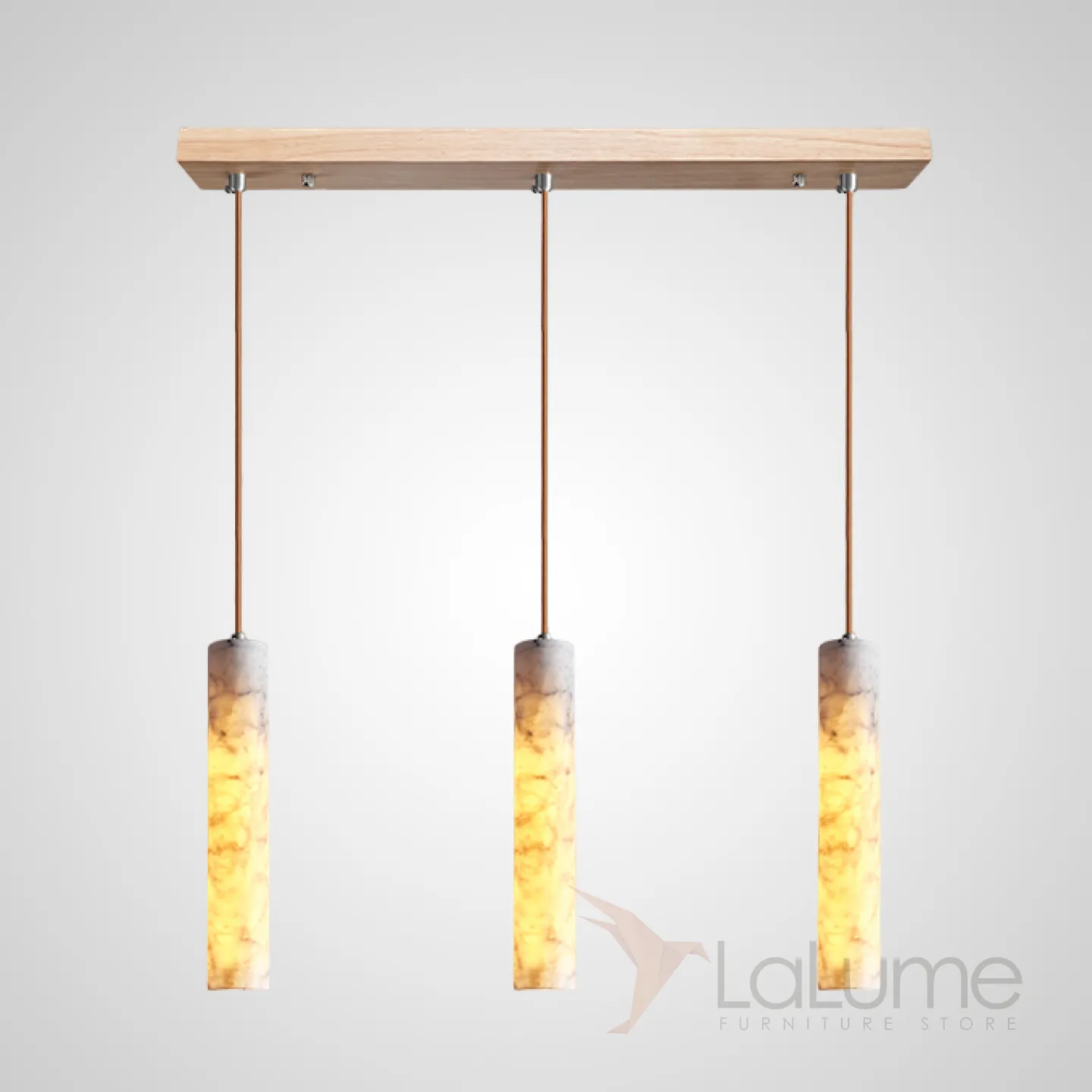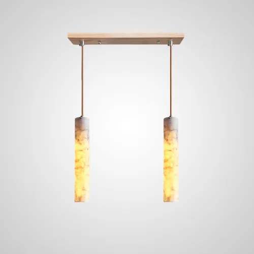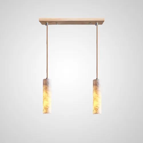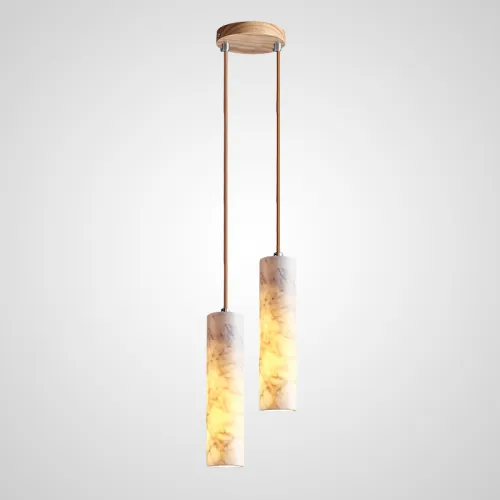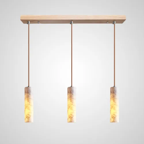 Готовая комбинация подвесных светильников с цилиндрическим корпусом из белого мрамора и деревянным креплением REOR COMBO C L3 Планка