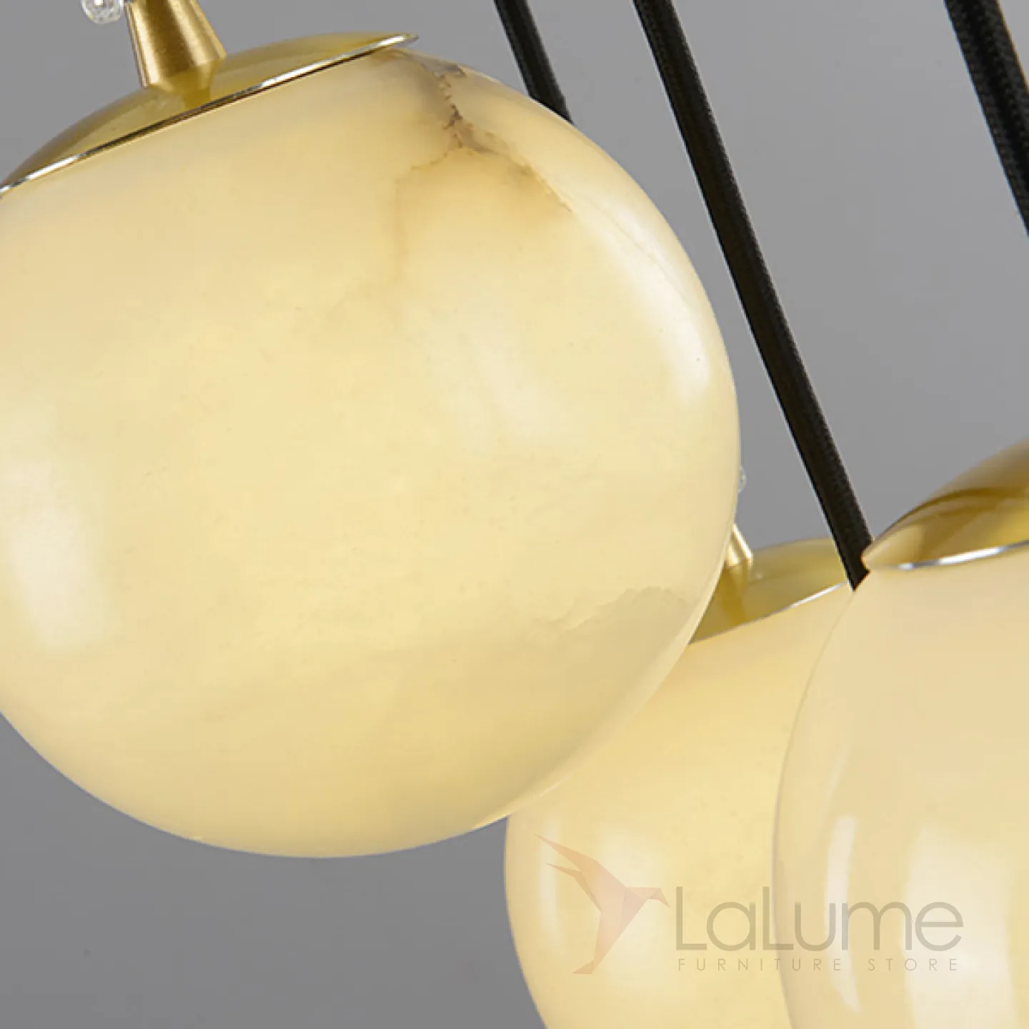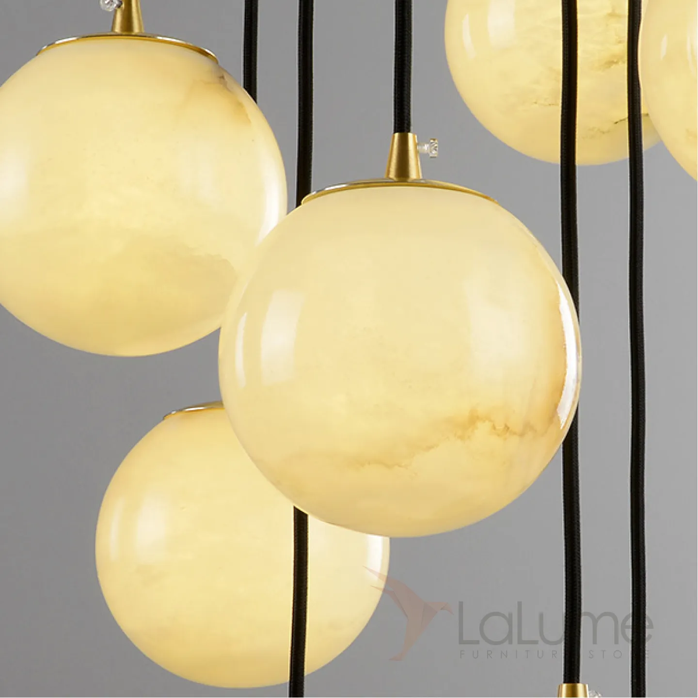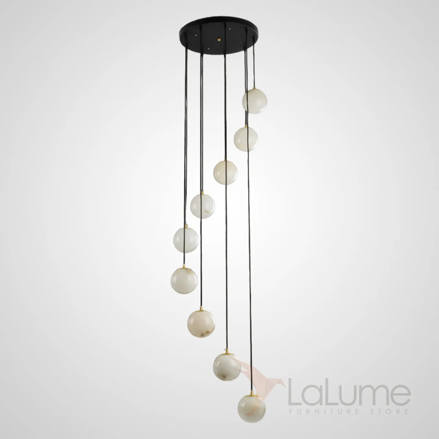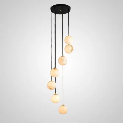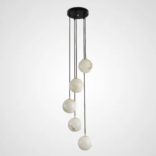 Готовая комбинация подвесных светильников c шарообразными плафонами из натурального белого мрамора MOSA L9
