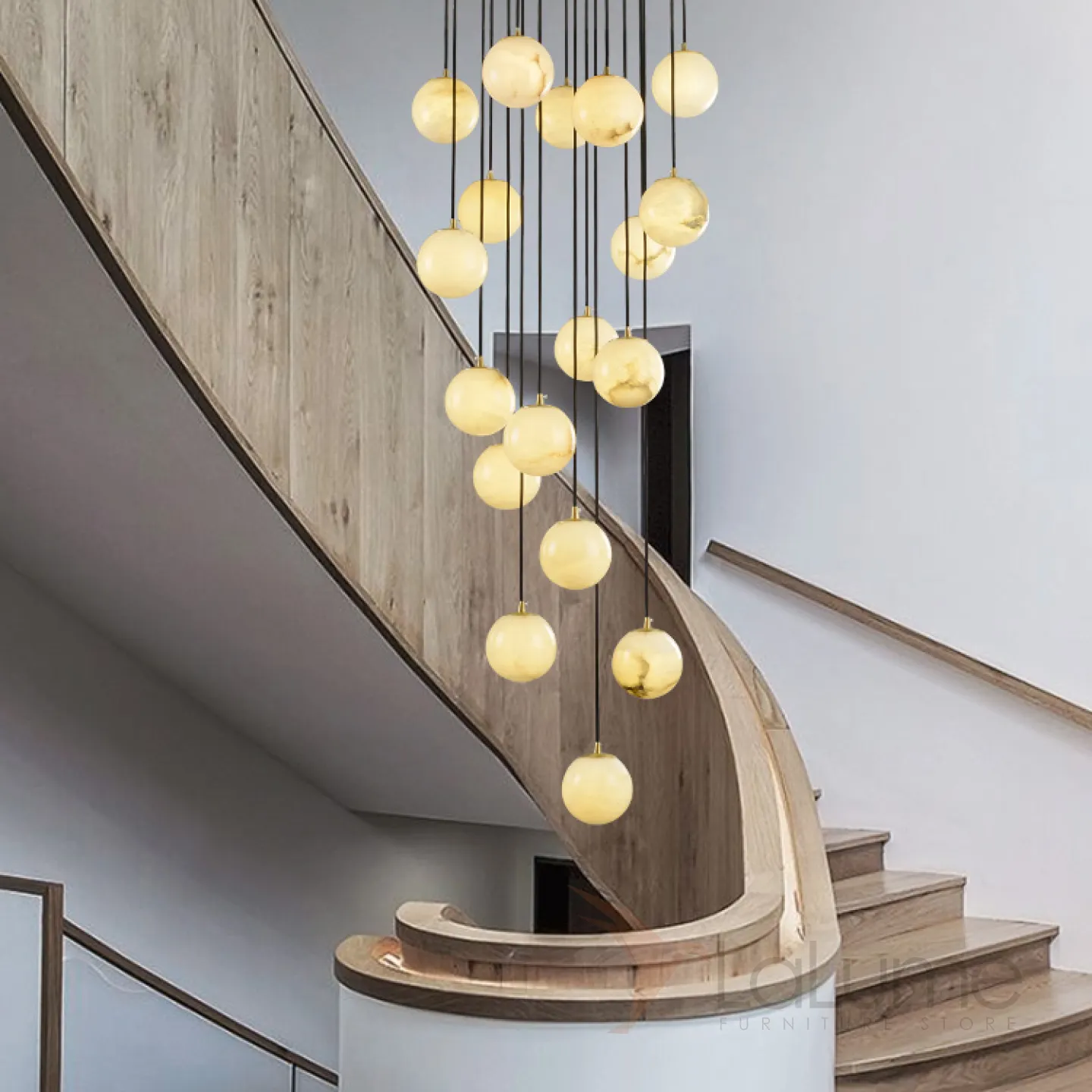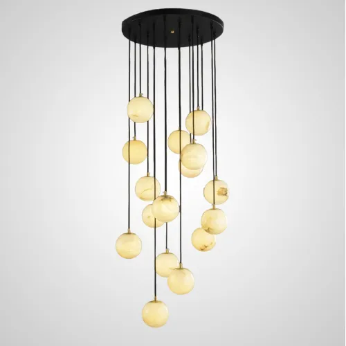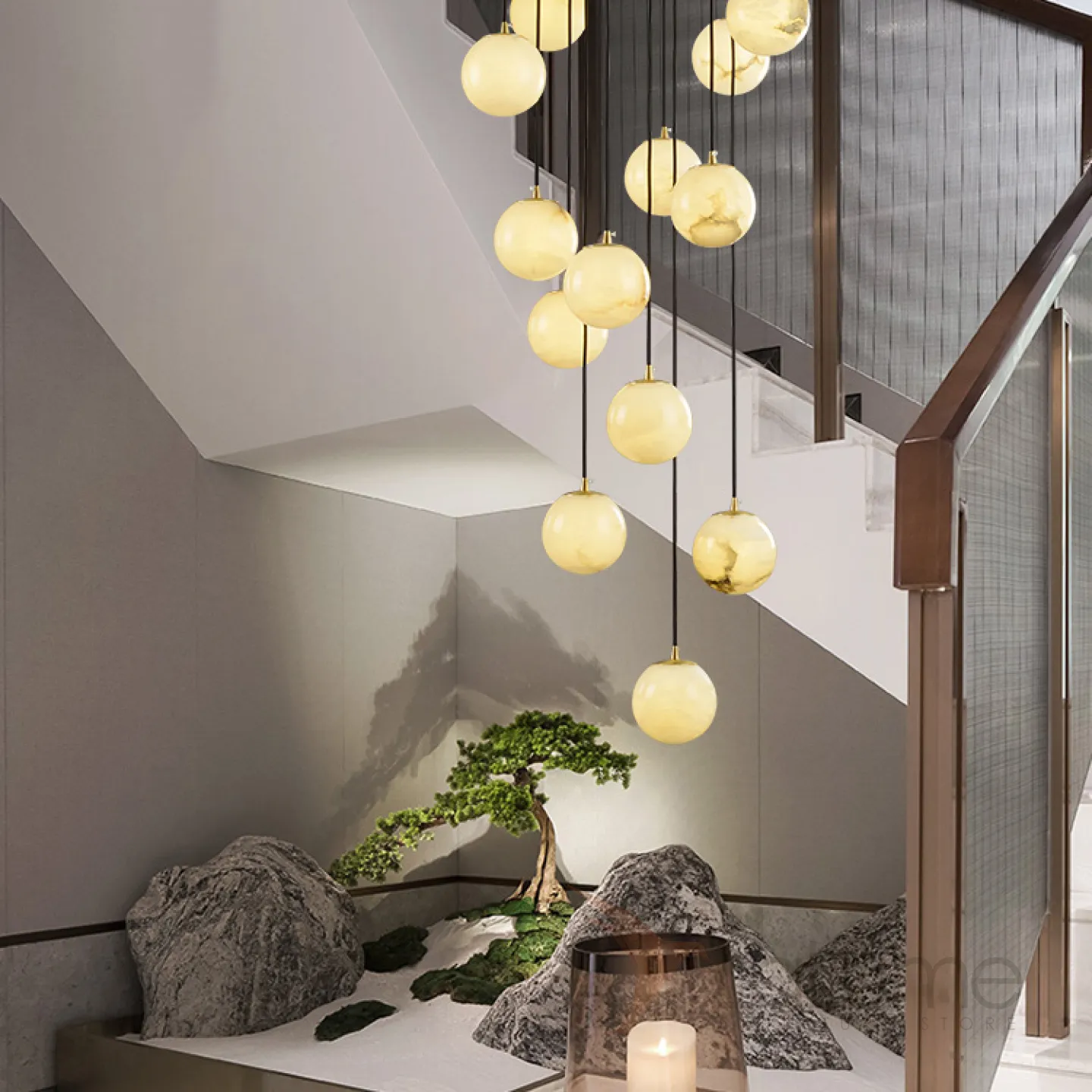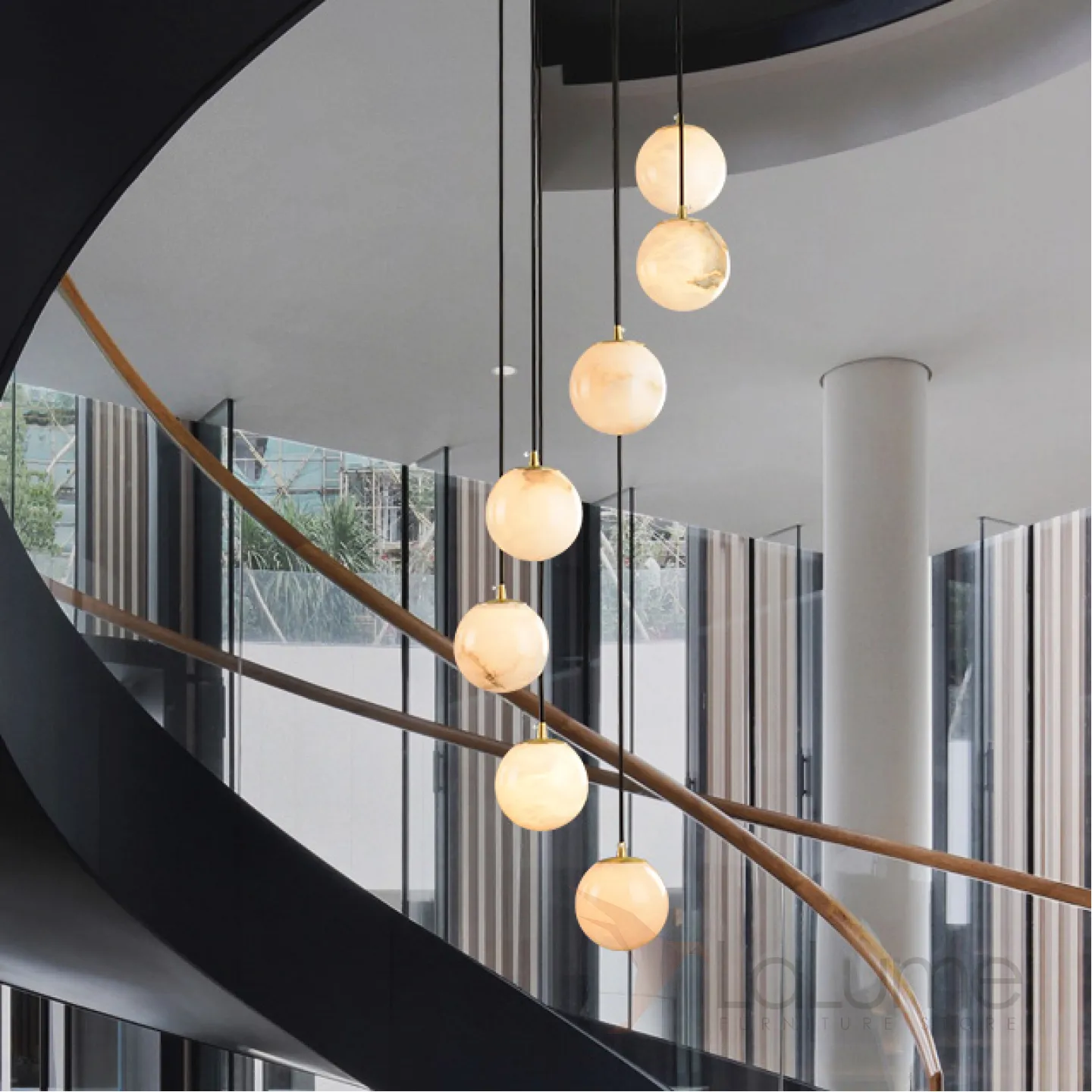 Готовая комбинация подвесных светильников c шарообразными плафонами из натурального белого мрамора MOSA L9
