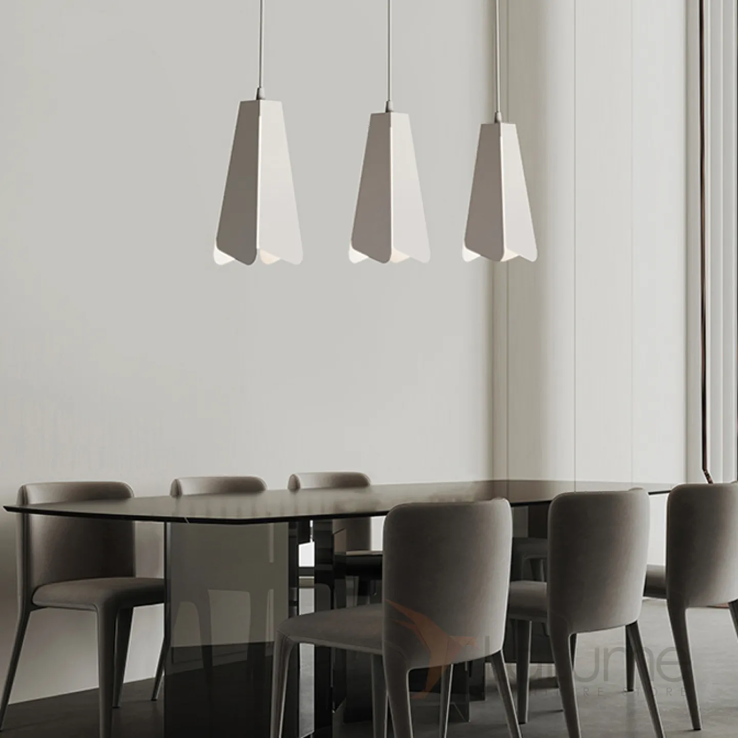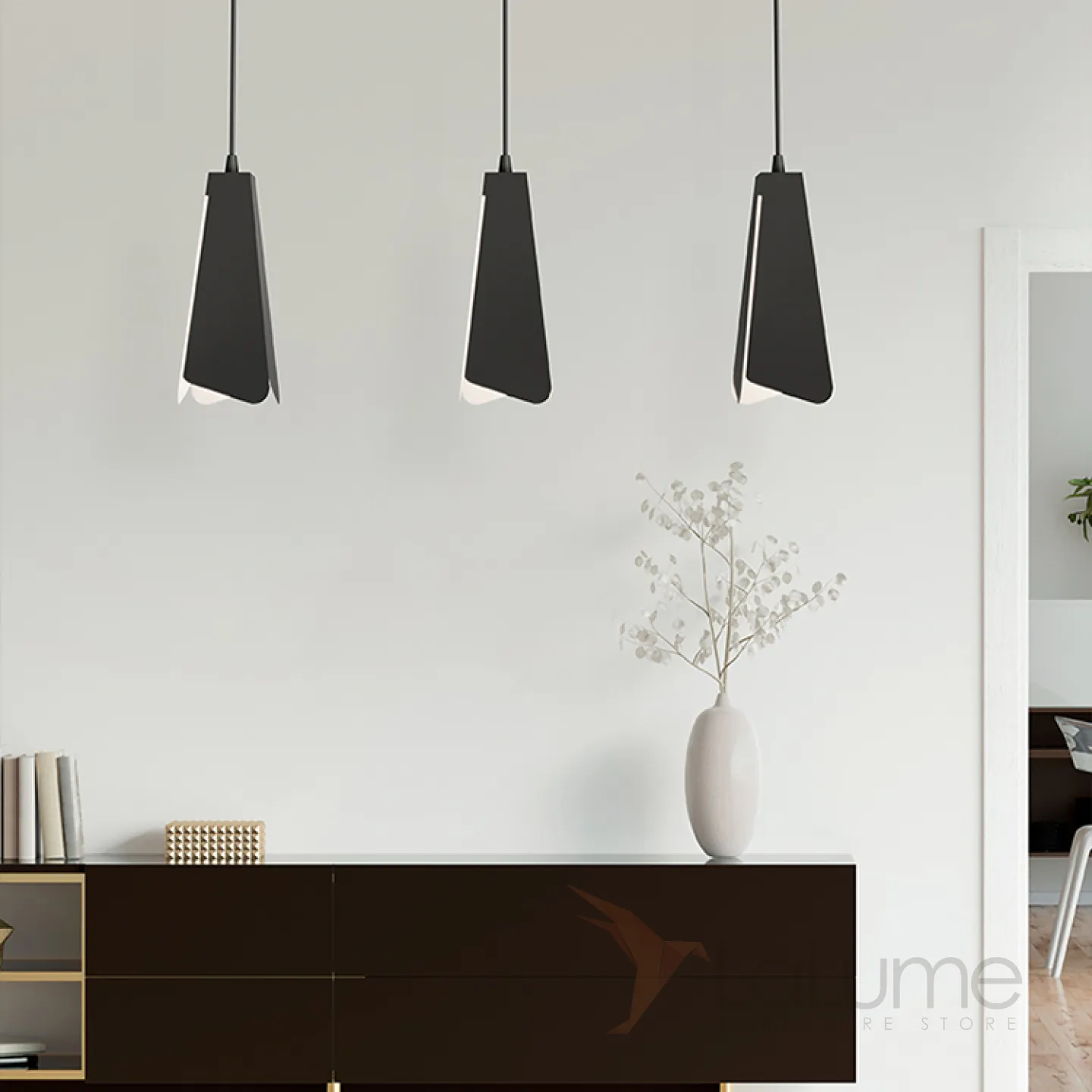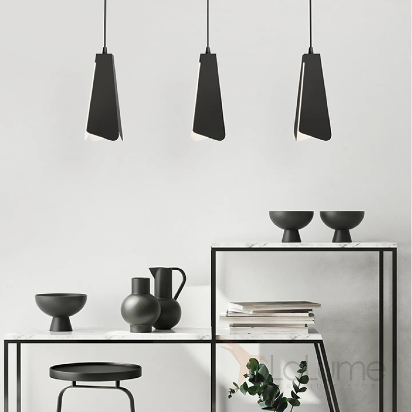 Готовая комбинация подвесных светильников c трапециевидным абажуром из ассиметричных пластин TORBEN TRIO White