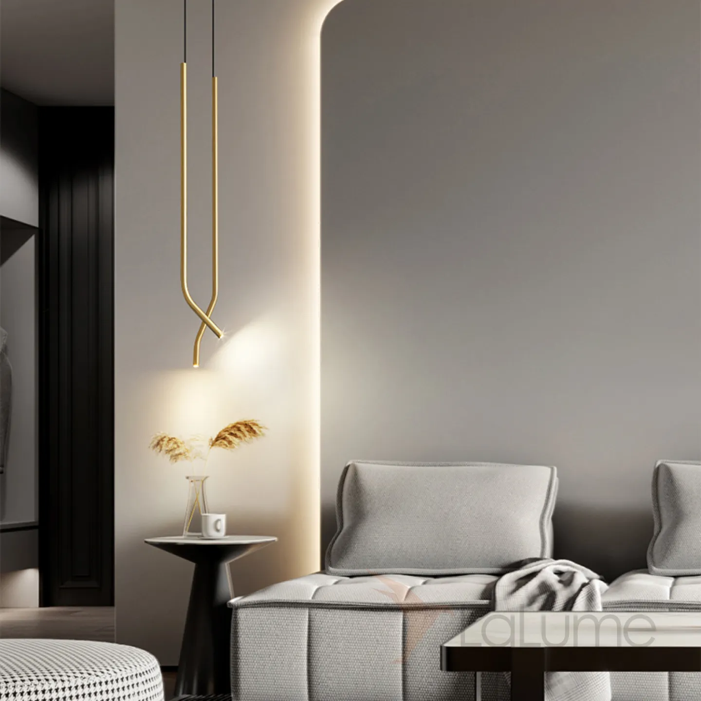 Готовая комбинация подвесных светодиодных светильников с изогнутым трубчатым корпусом из латуни ZAKRIS DUO Brass