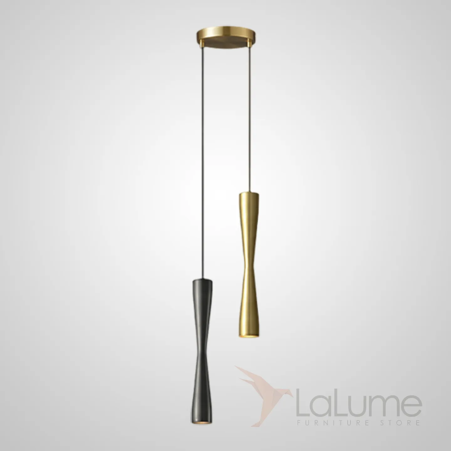 Готовая комбинация подвесных светодиодных светильников c латунным корпусом в форме песочных часов ORVIN DUO Black Brass