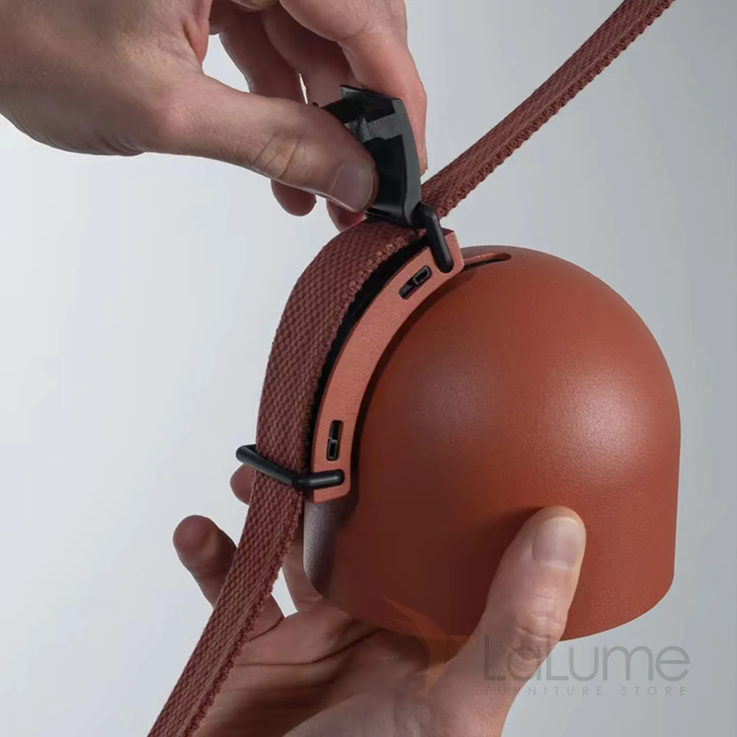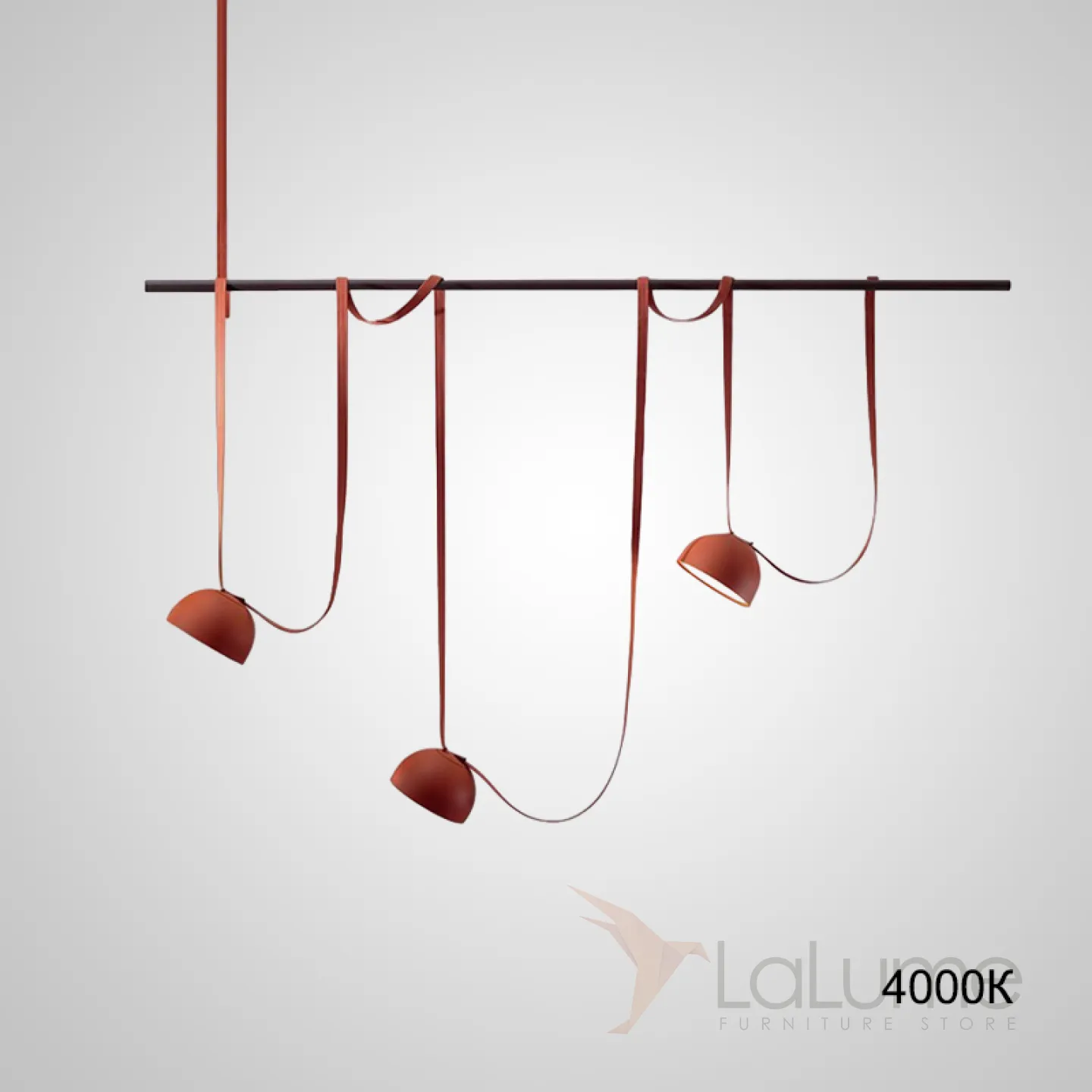 Готовая комбинация подвесных светодиодных светильников c красными абажурами на черной рейке с текстильными ремнями EBBOT 4000К