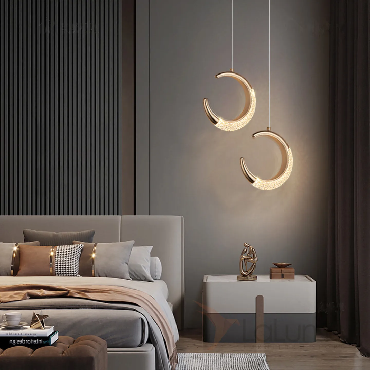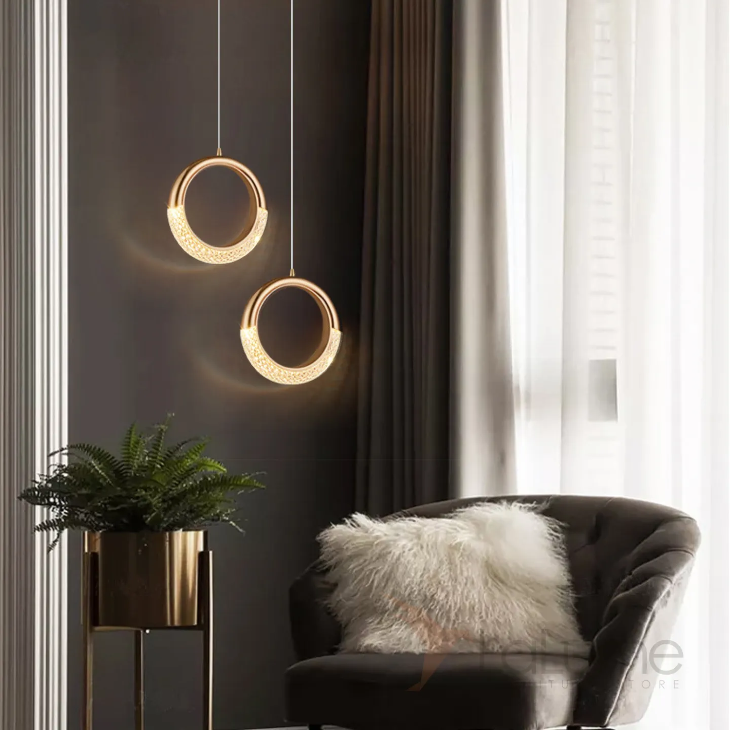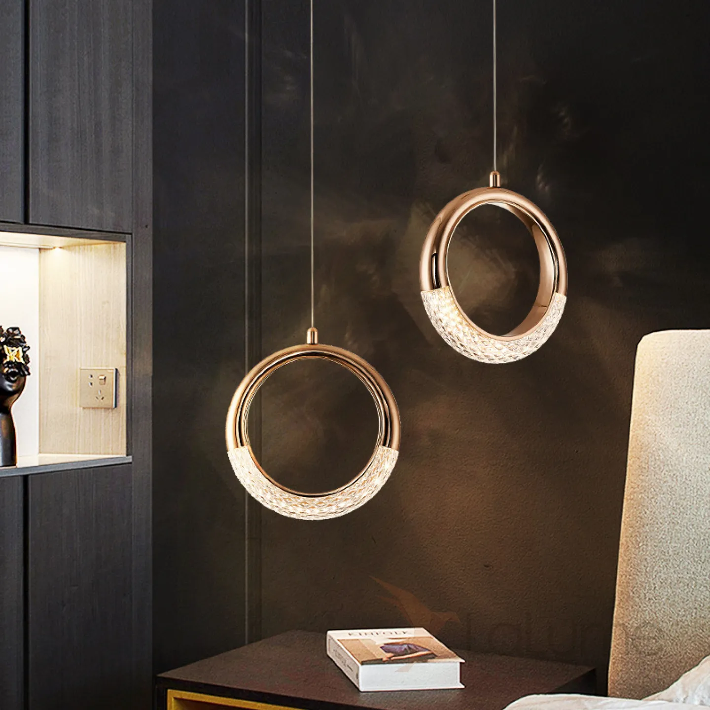 Готовая комбинация из двух подвесных светодиодных светильников в виде кольца и полукольца с рельефной поверхностью SONKE DUO B 3000К