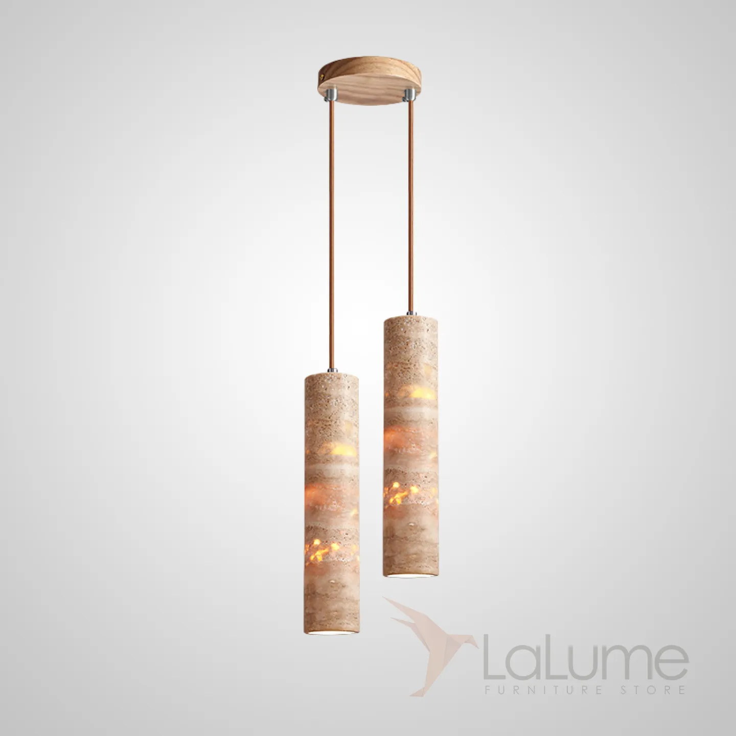 Готовая комбинация подвесных светильников c цилиндрическим корпусом из желтого камня травертина EGBERT COMBO A L2 Диск