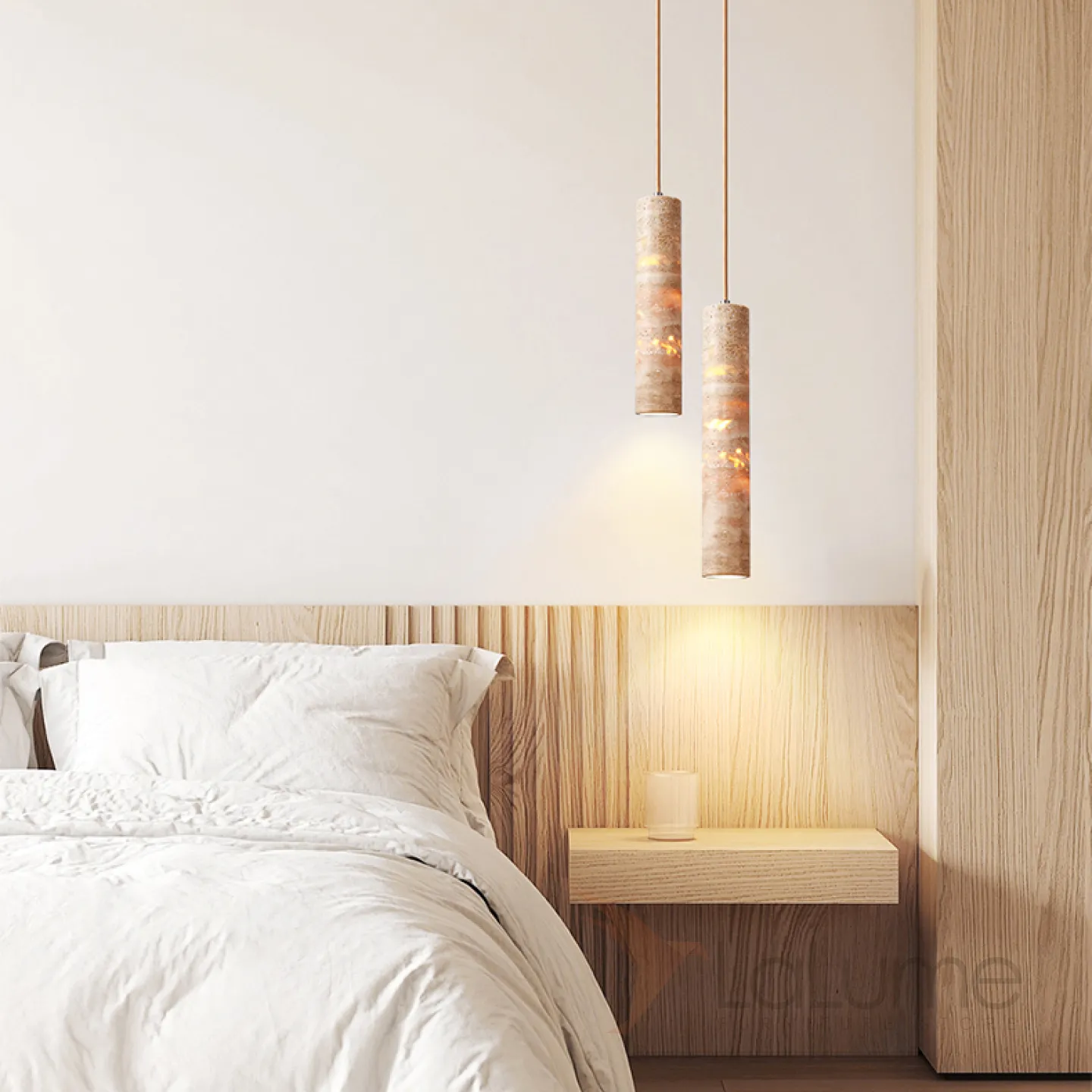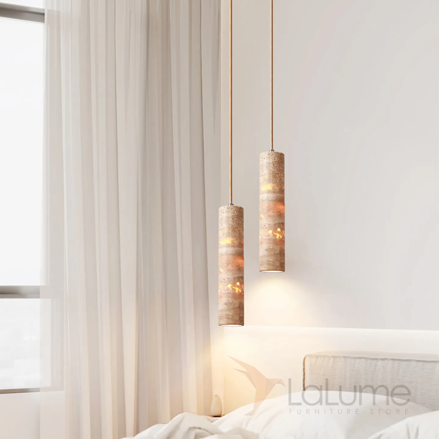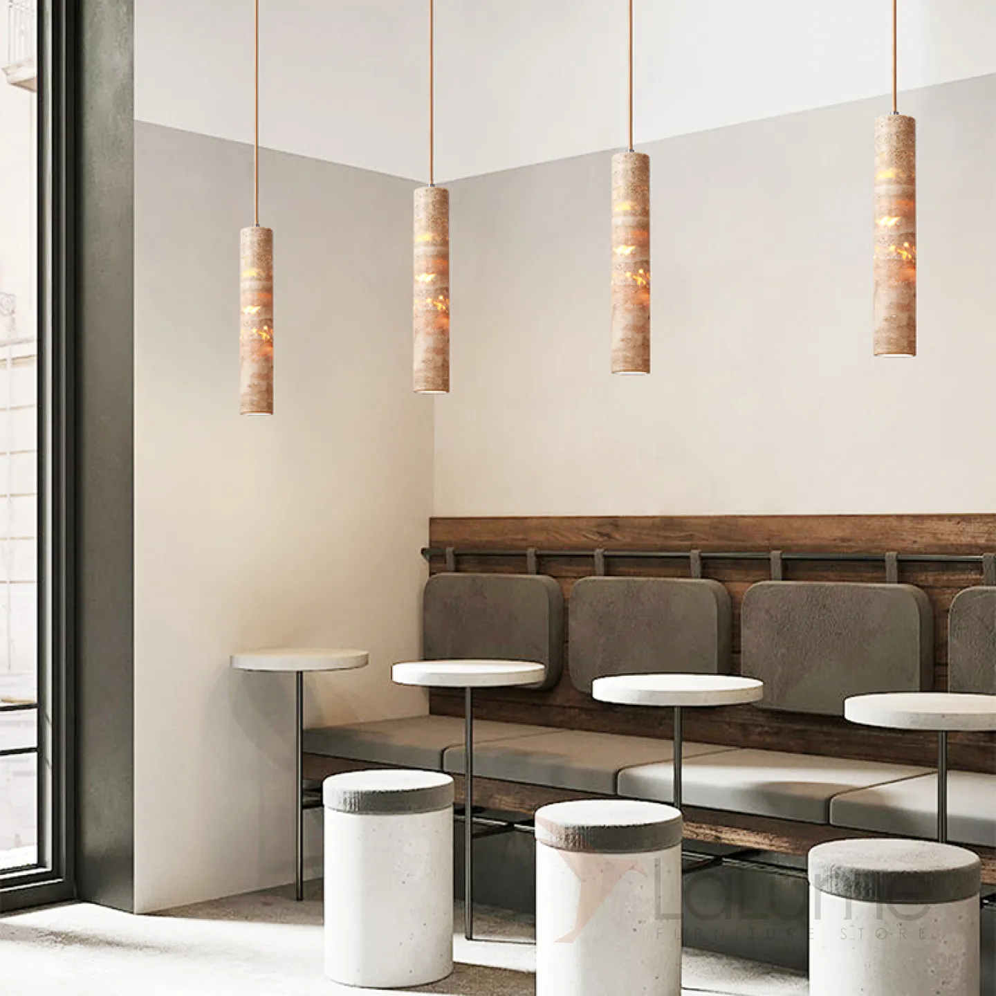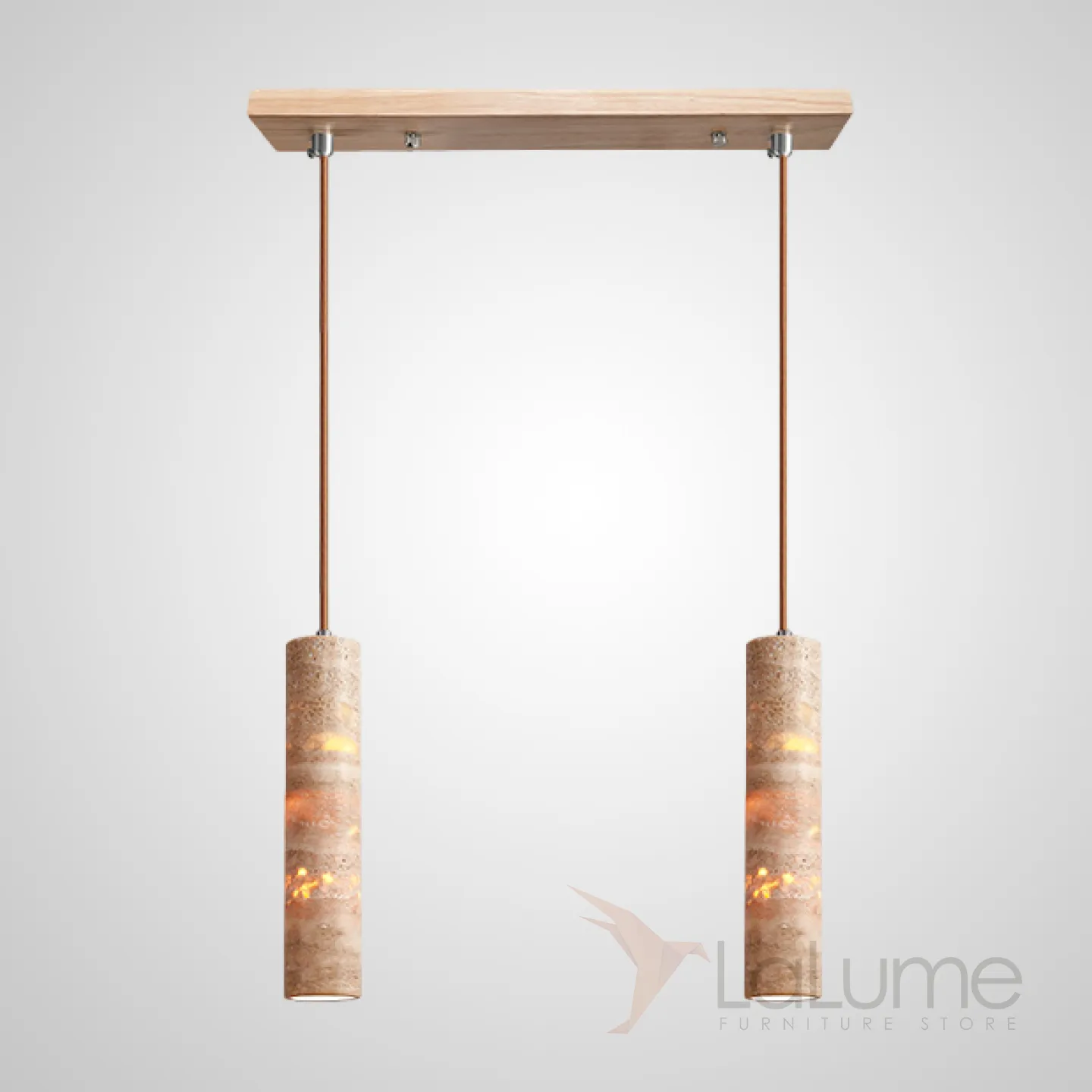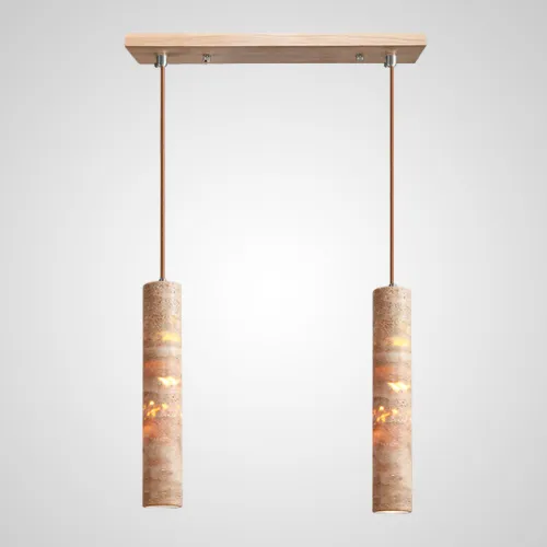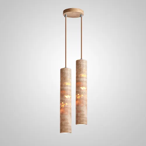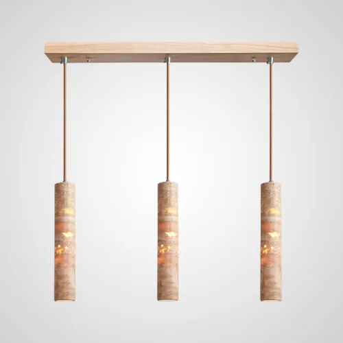 Готовая комбинация подвесных светильников c цилиндрическим корпусом из желтого камня травертина EGBERT COMBO A L2 Планка
