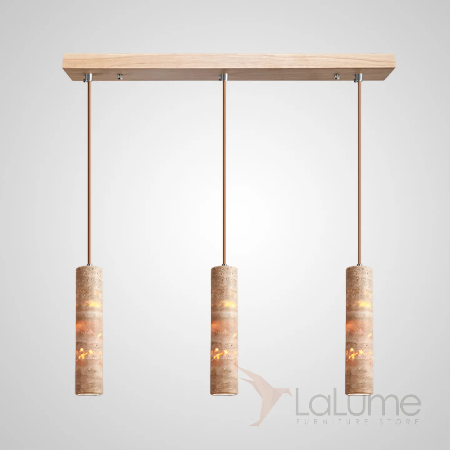 Готовая комбинация подвесных светильников c цилиндрическим корпусом из желтого камня травертина EGBERT COMBO A L3 Планка