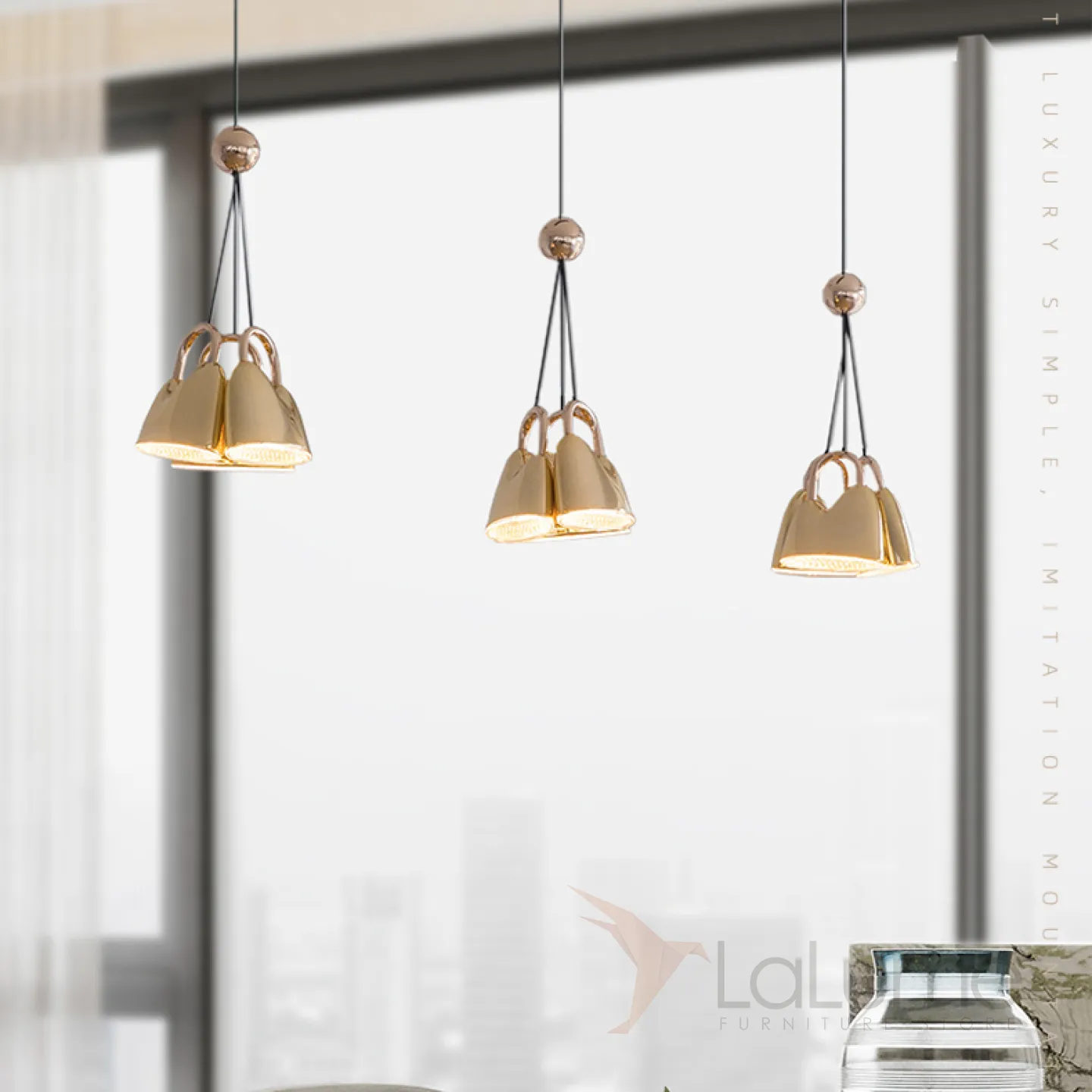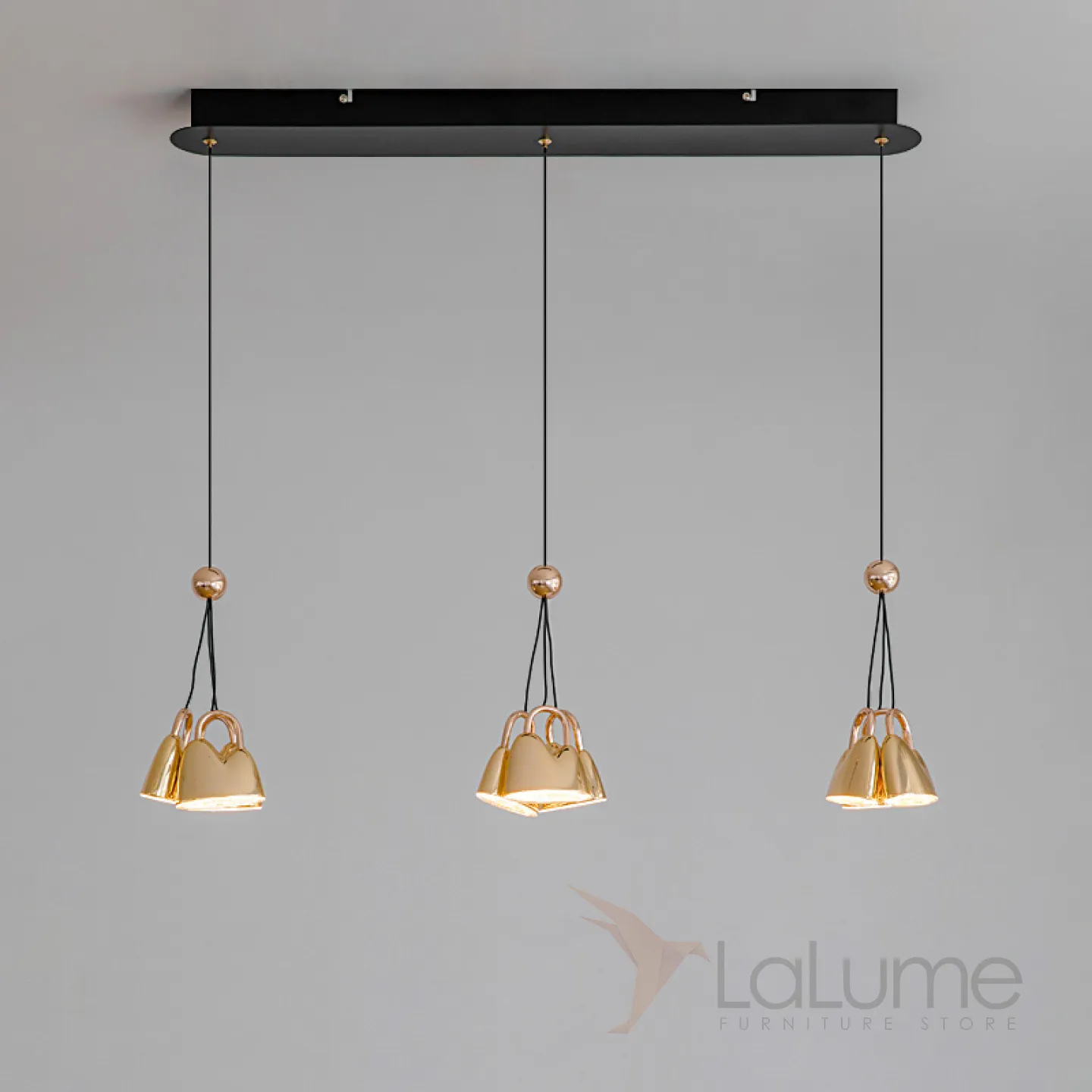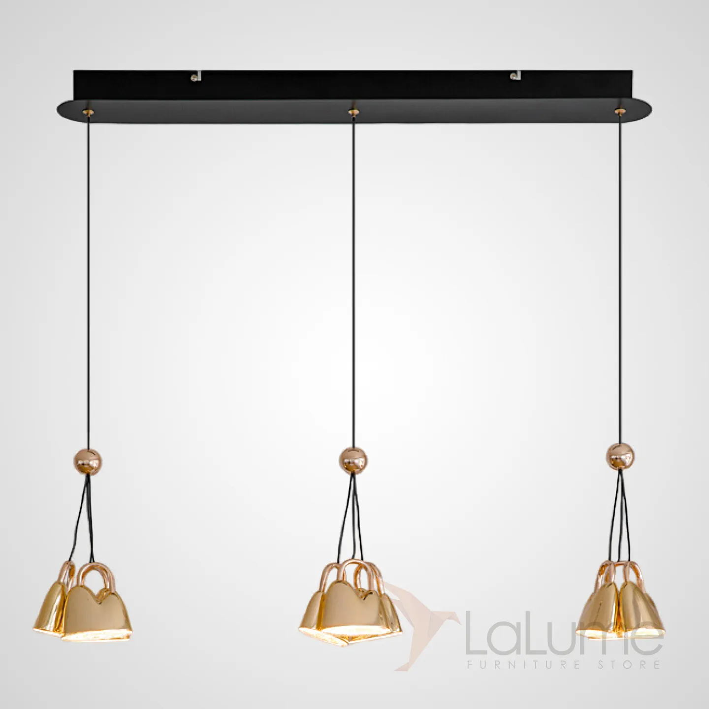 Готовая комбинация подвесных светодиодных светильников с тройным рассеивателем в цвете глянцевой латуни SKOLD TRIO