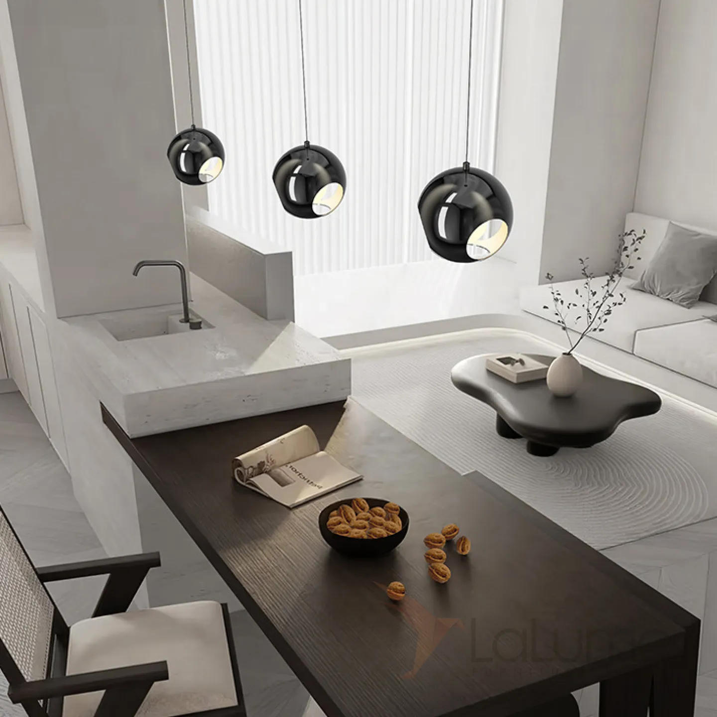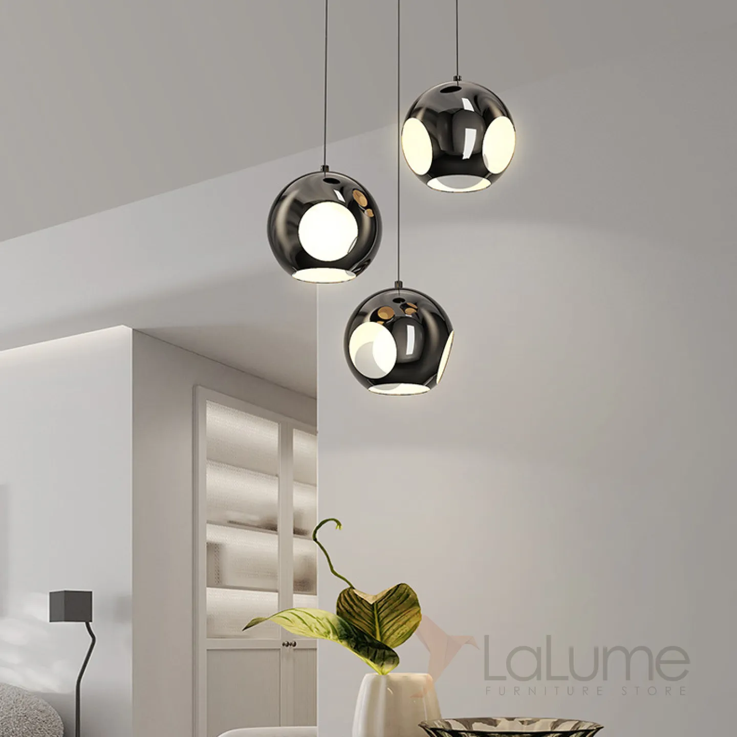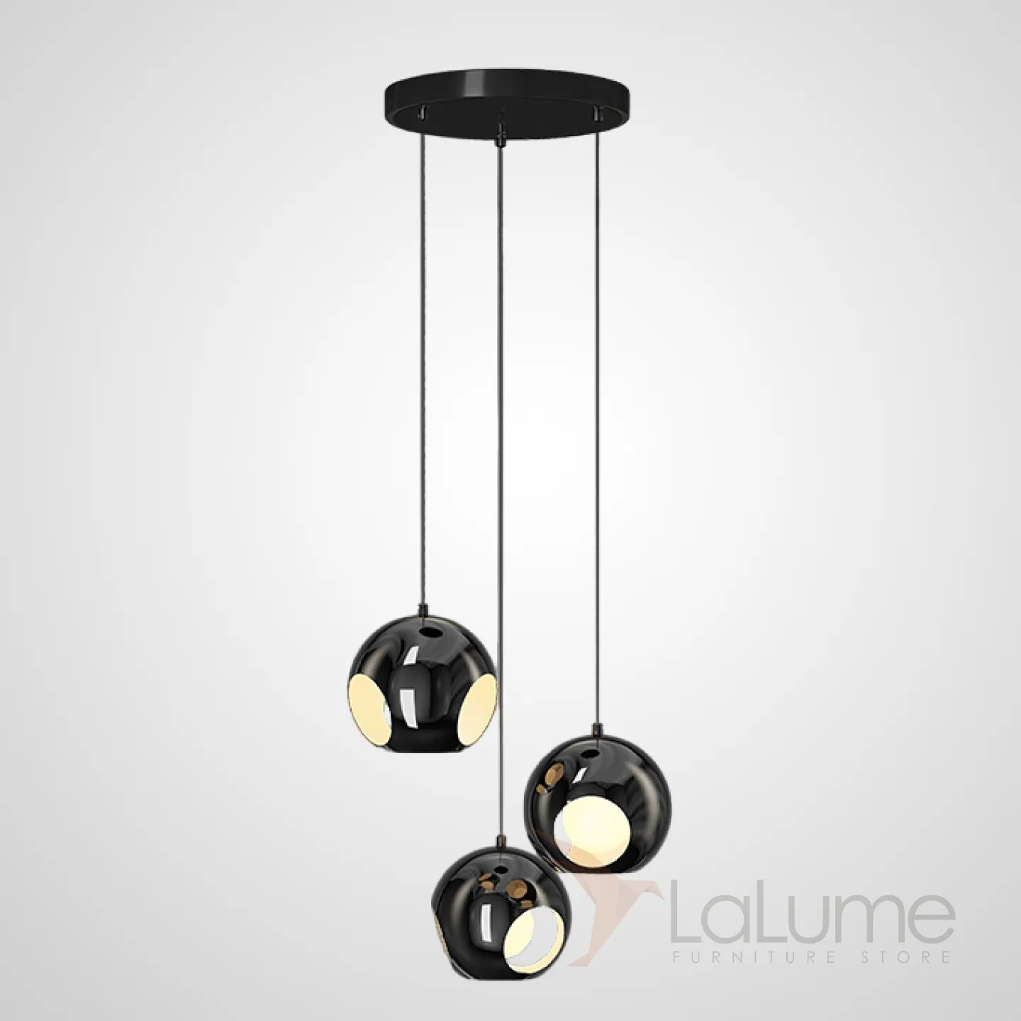 Готовая комбинация подвесных светодиодных светильников c черными шарообразными рассеивателями с круглыми отверстиями MATEAS TRIO D33