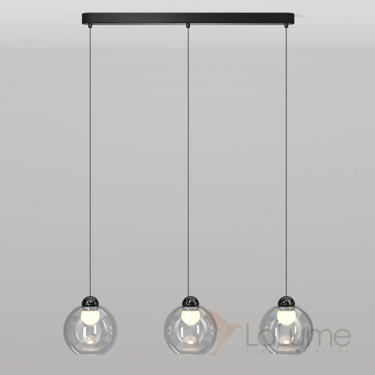 Готовая комбинация подвесных светодиодных светильников c шарообразными плафонами из прозрачного стекла NELSON TRIO L78