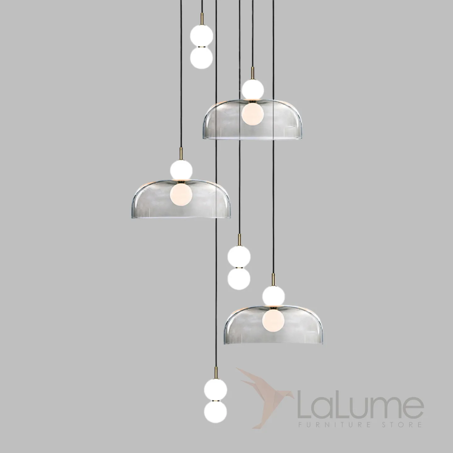 Готовая комбинация подвесных светодиодных светильников c шарообразными плафонами и купольными рассеивателями ROCCO COMBO B D85 6 подвесов