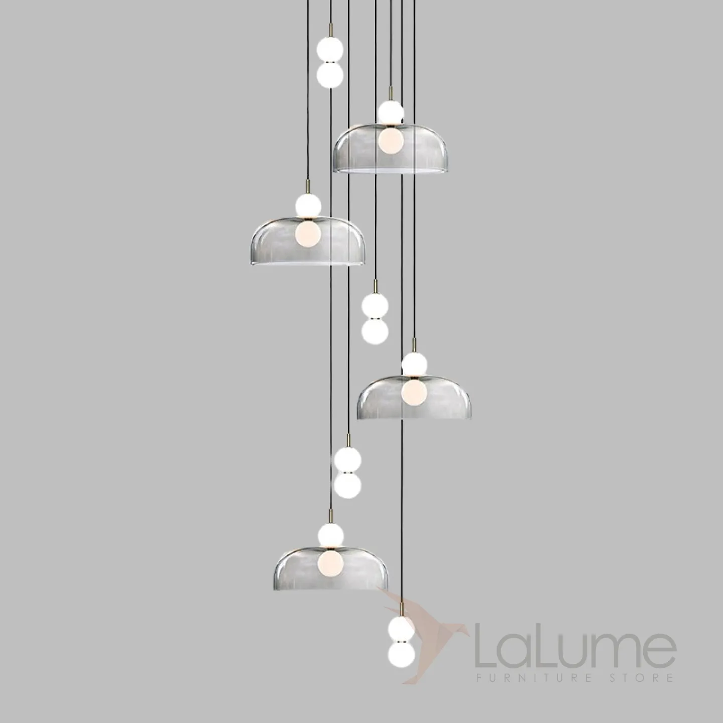 Готовая комбинация подвесных светодиодных светильников c шарообразными плафонами и купольными рассеивателями ROCCO COMBO B 8 подвесов
