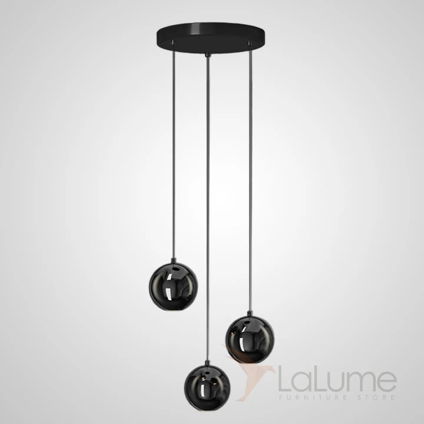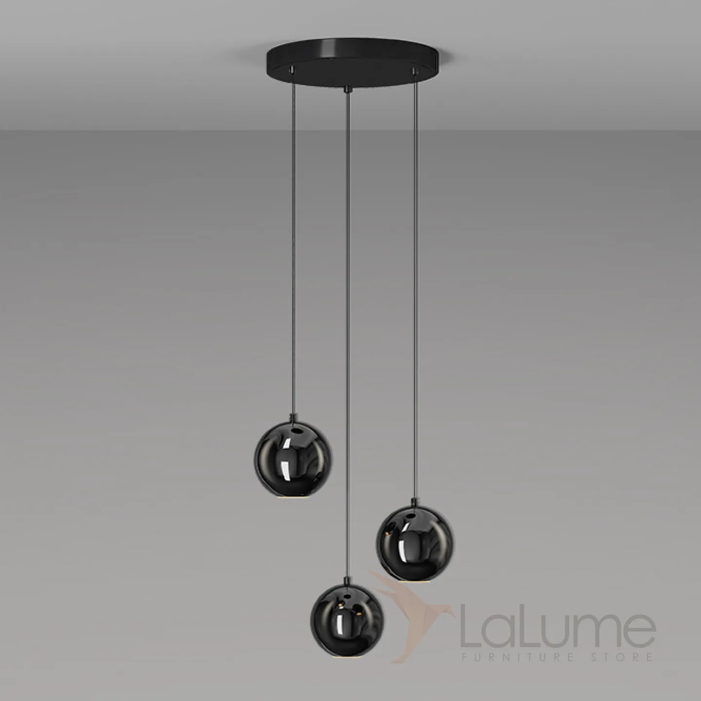 Готовая комбинация подвесных светодиодных светильников с глянцевым черным корпусом шарообразной формы OSTE TRIO D33