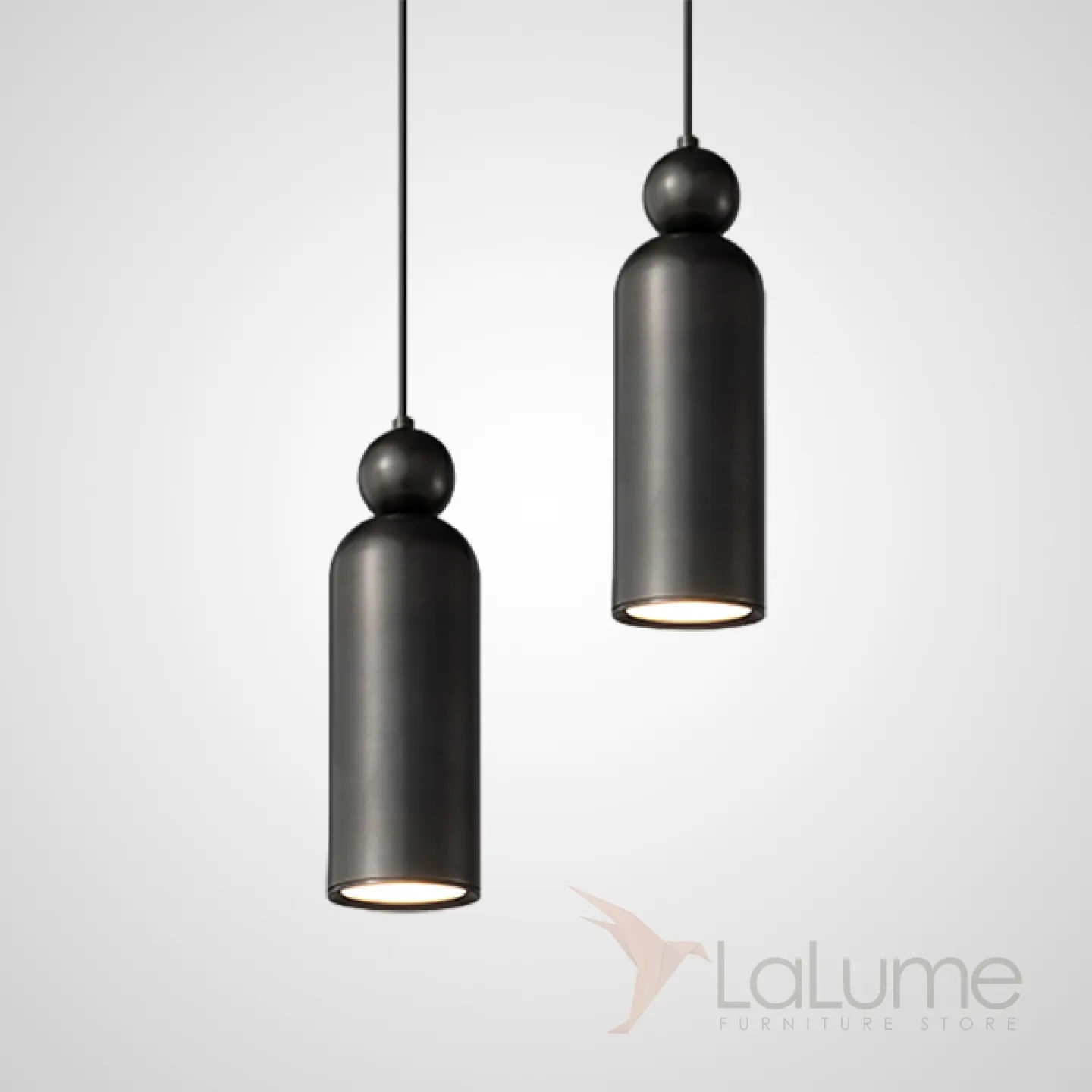 Парная комбинация подвесных светодиодных светильников с цилиндрическим корпусом и шарообразным клипом из натуральной и черненой латуни LEFFE DUO Black