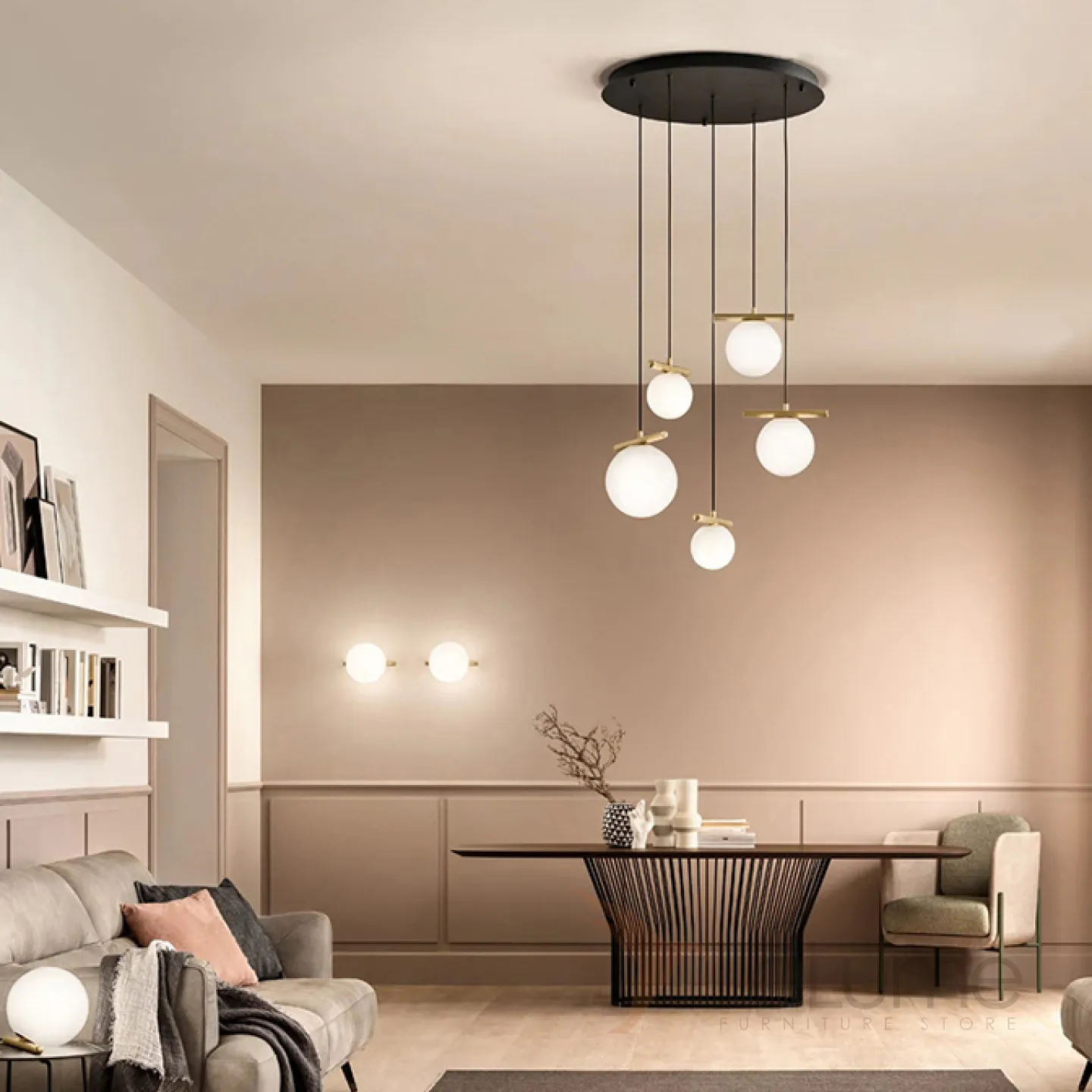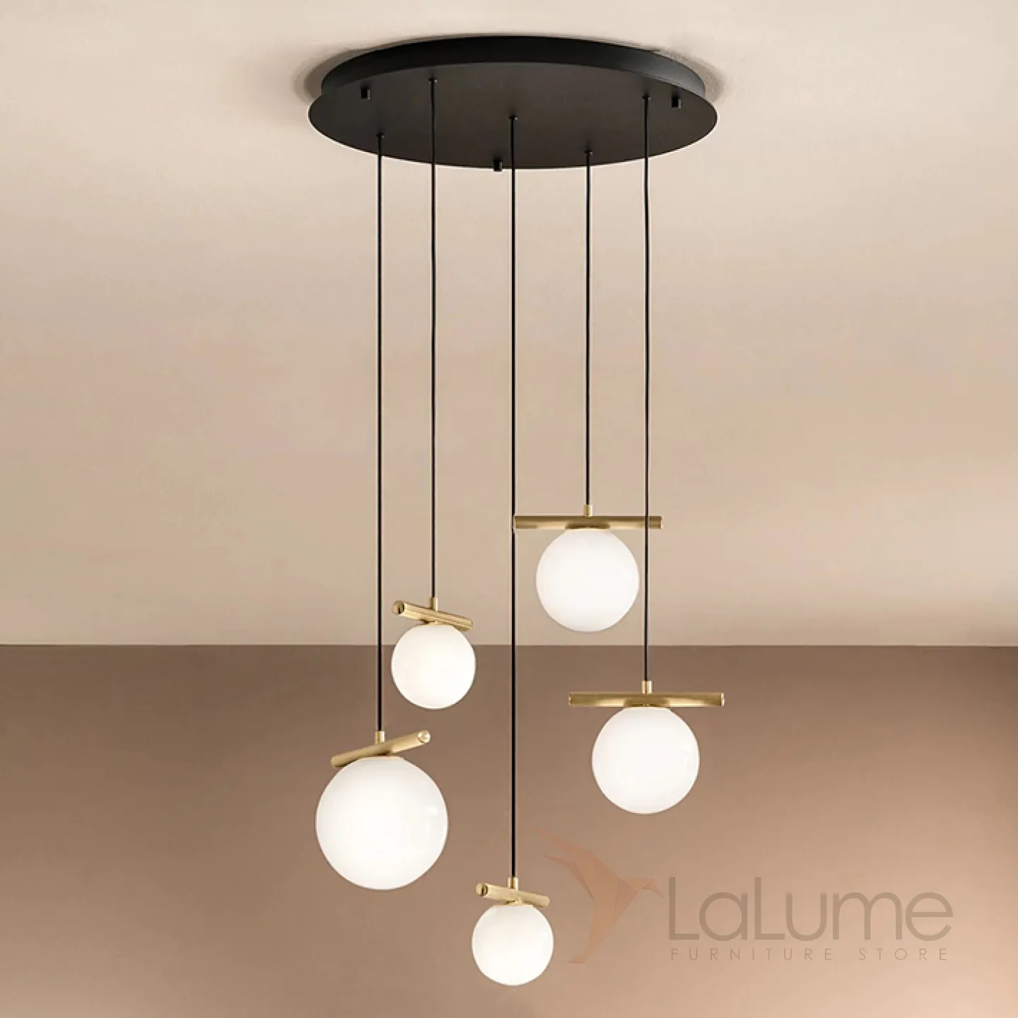 Готовая комбинация подвесных светильников c шарообразными стеклянными плафонами на металлических рейках KIRAN COMBO