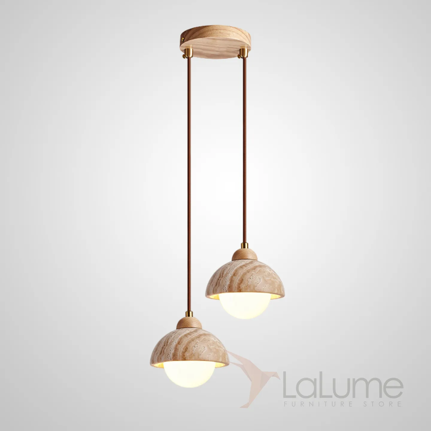 Готовая комбинация подвесных светильников с цилиндрическим и купольным абажуром из камня травертина с деревянным цокалем JAMTE COMBO C L2 Диск