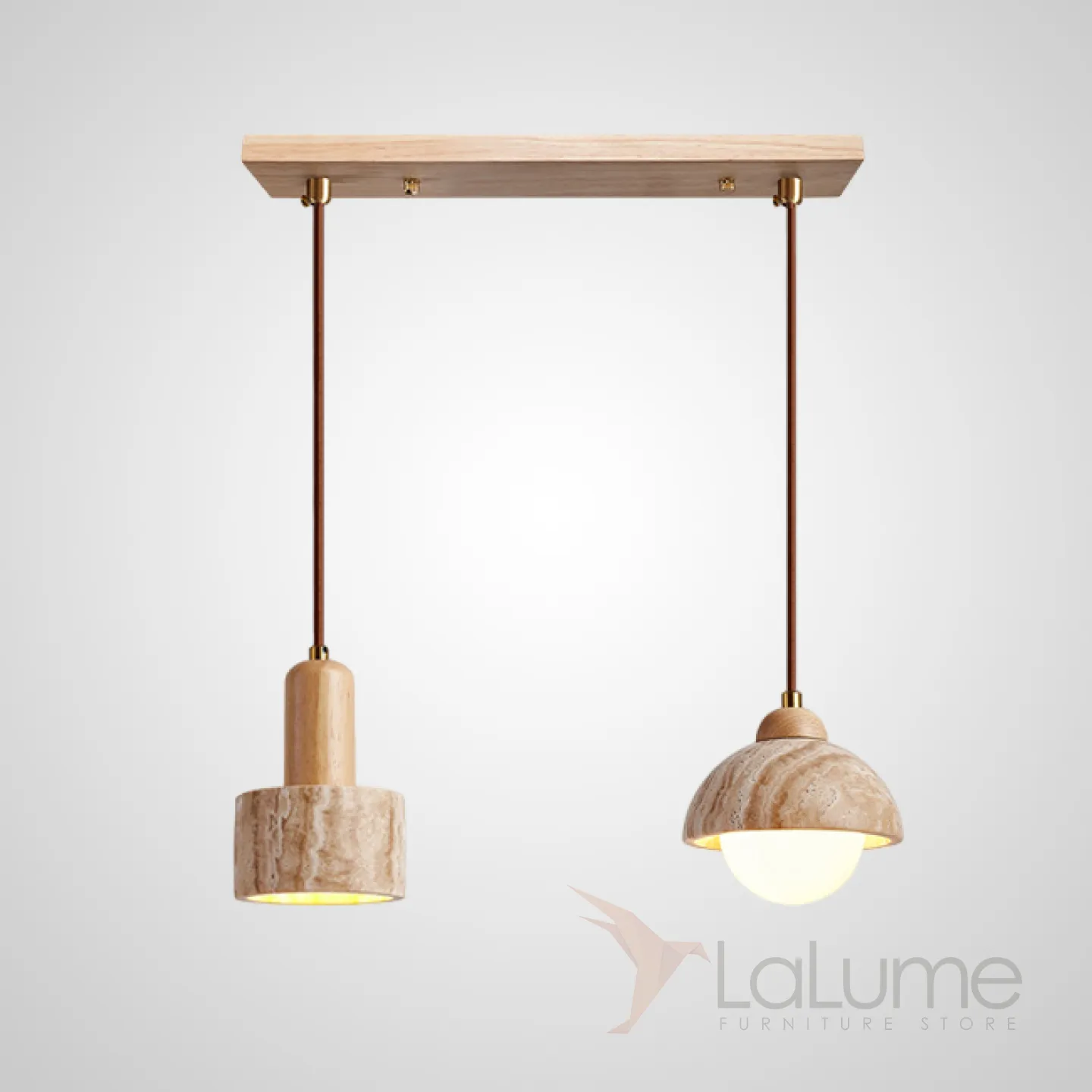Готовая комбинация подвесных светильников с цилиндрическим и купольным абажуром из камня травертина с деревянным цокалем JAMTE COMBO B L2 Планка
