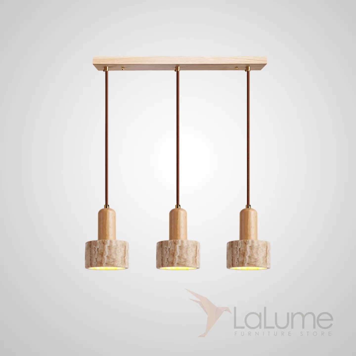 Готовая комбинация подвесных светильников с цилиндрическим и купольным абажуром из камня травертина с деревянным цокалем JAMTE COMBO A L3 Планка
