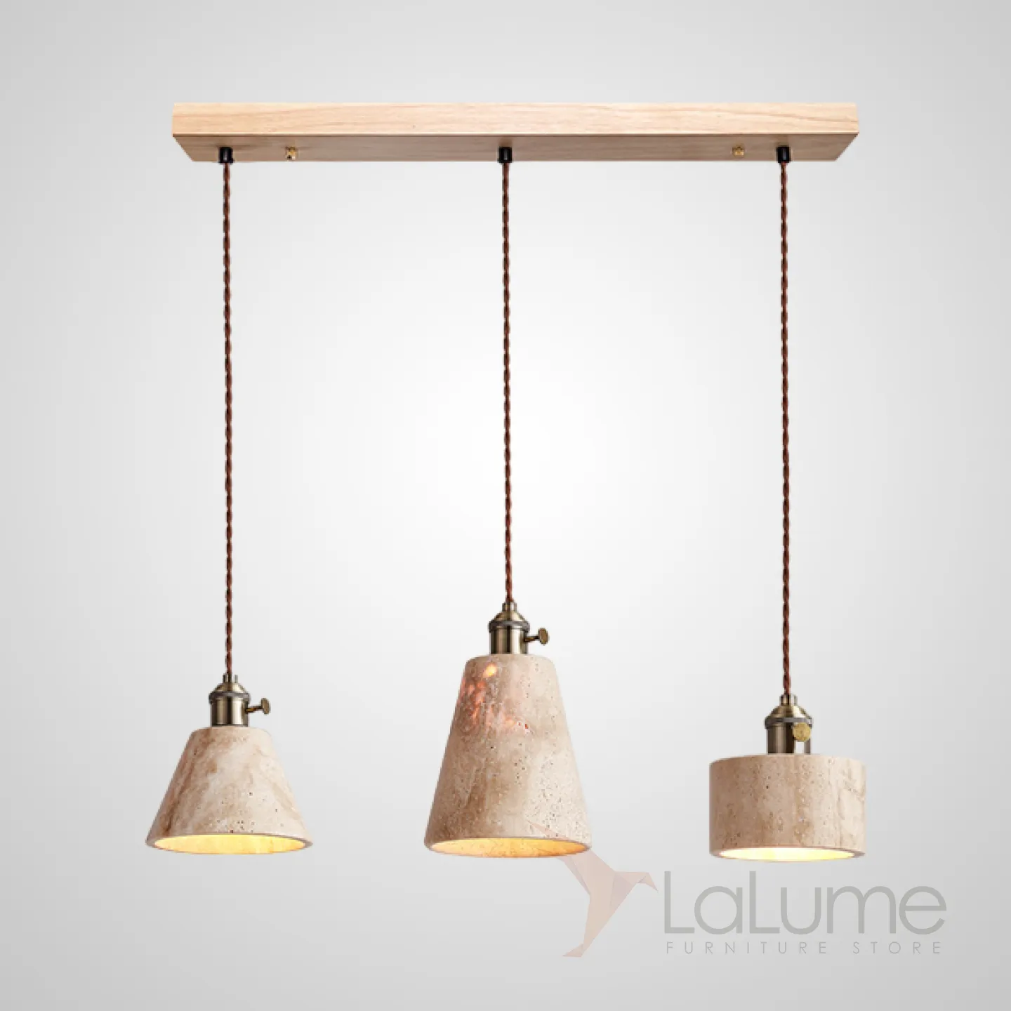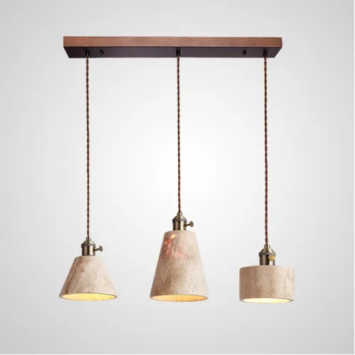 Готовая комбинация подвесных светильников с каменным корпусом геометрической формы и деревянным креплением MODESTUS COMBO L60 Light brown