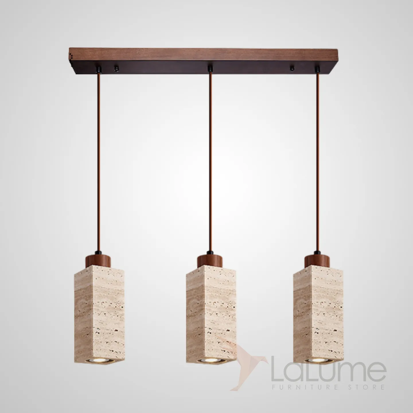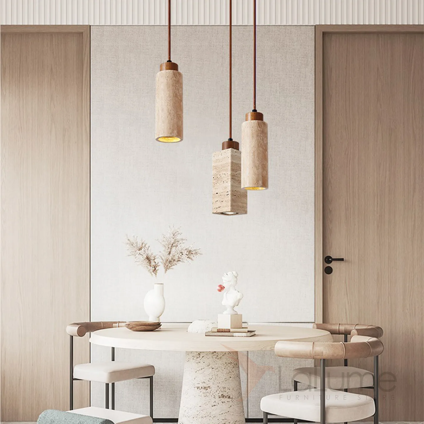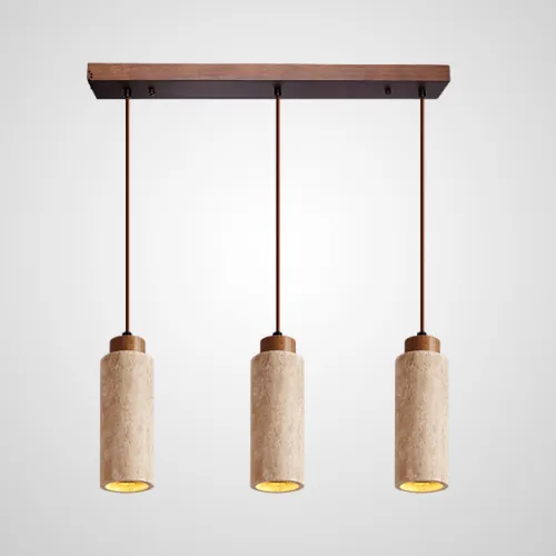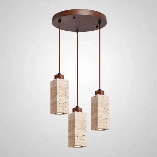 Готовая комбинация подвесных светильников с цилиндрическим и прямоугольным корпусом из камня травертина MAREC COMBO B L60