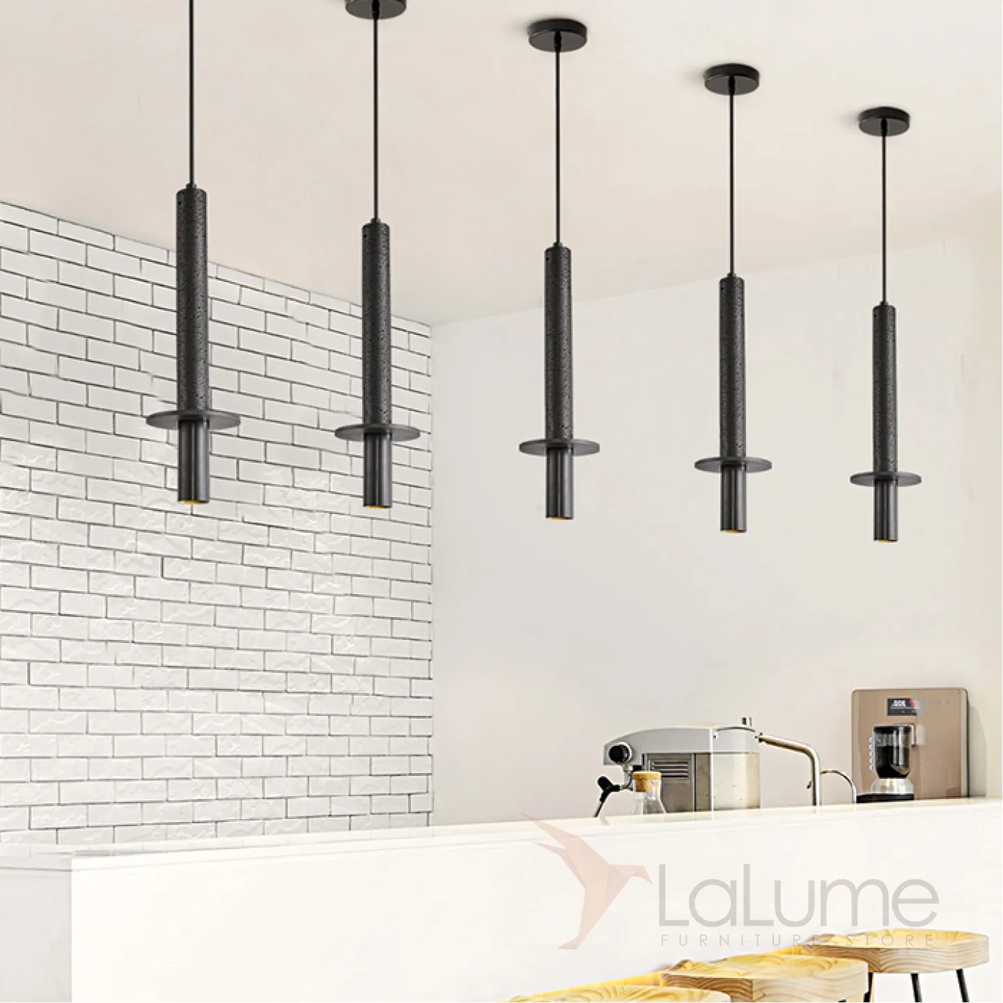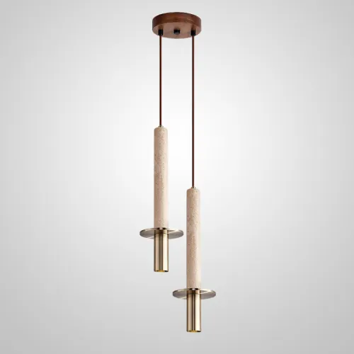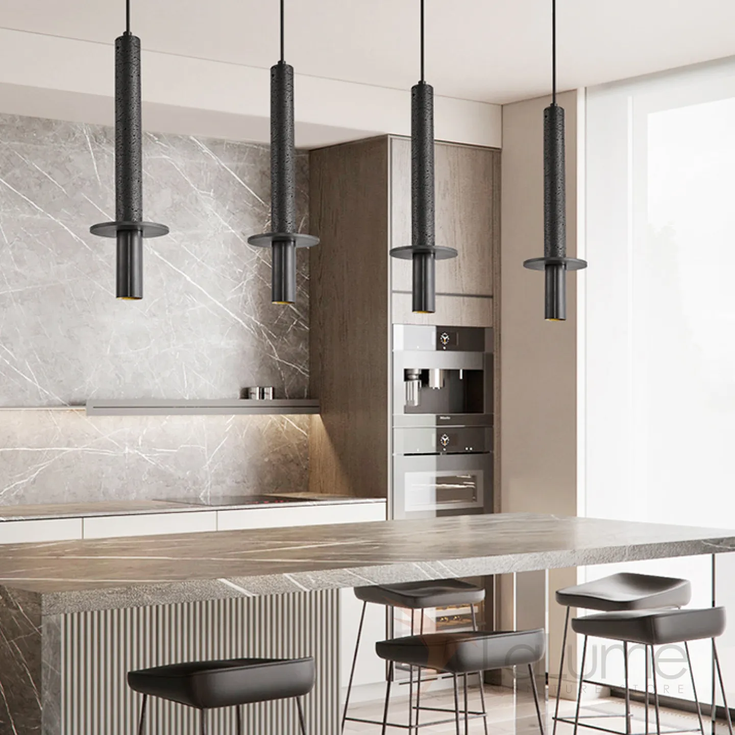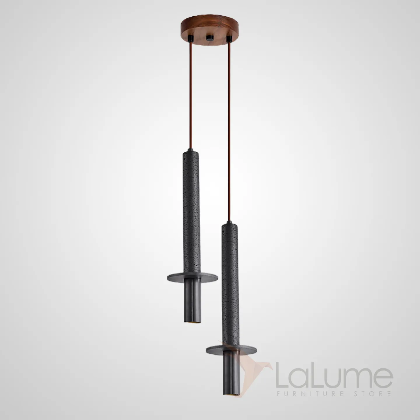 Готовая комбинация подвесных светильников с цилиндрическим корпусом из лавового камня и травертина с дисковидным рассеивателем HAGBART DUO Black