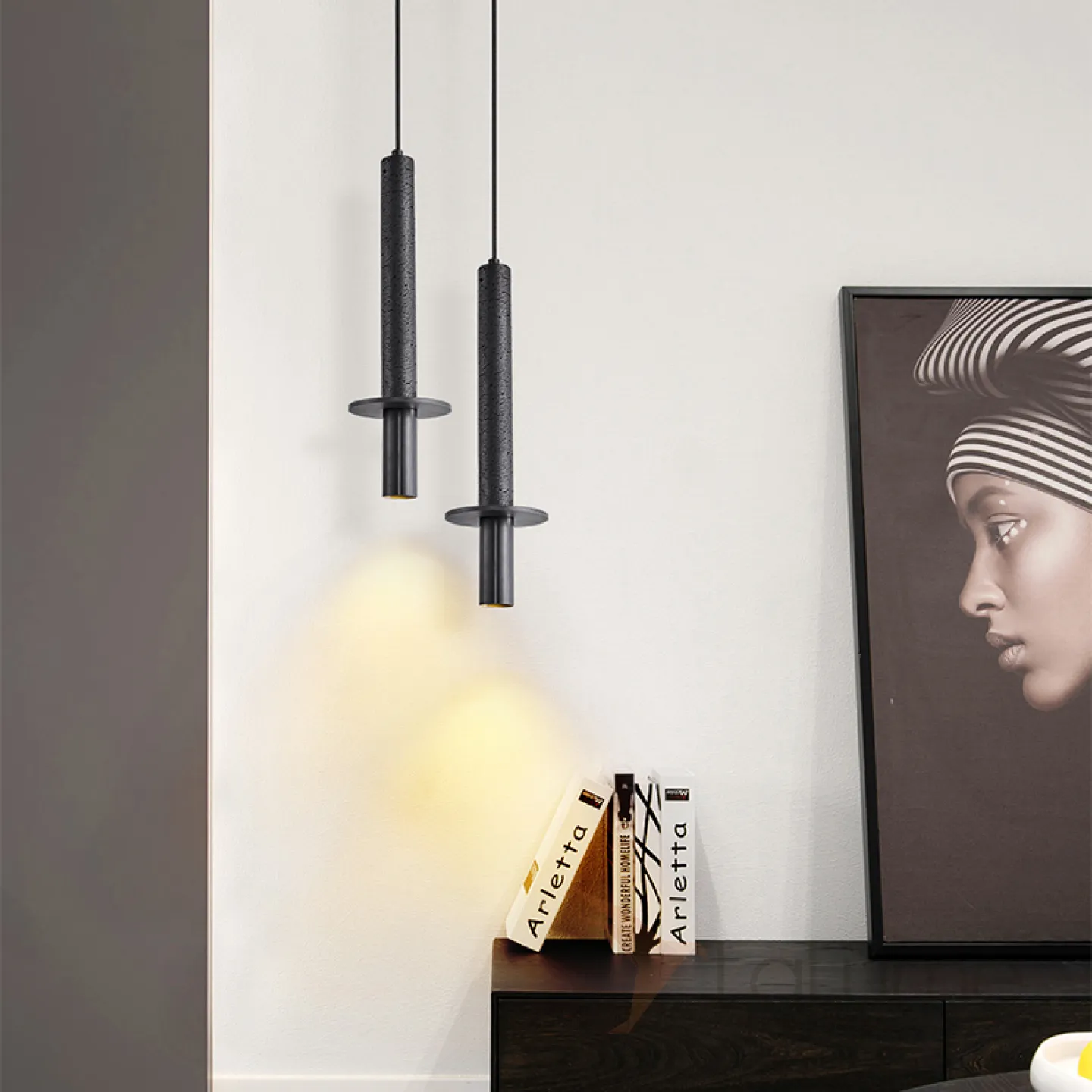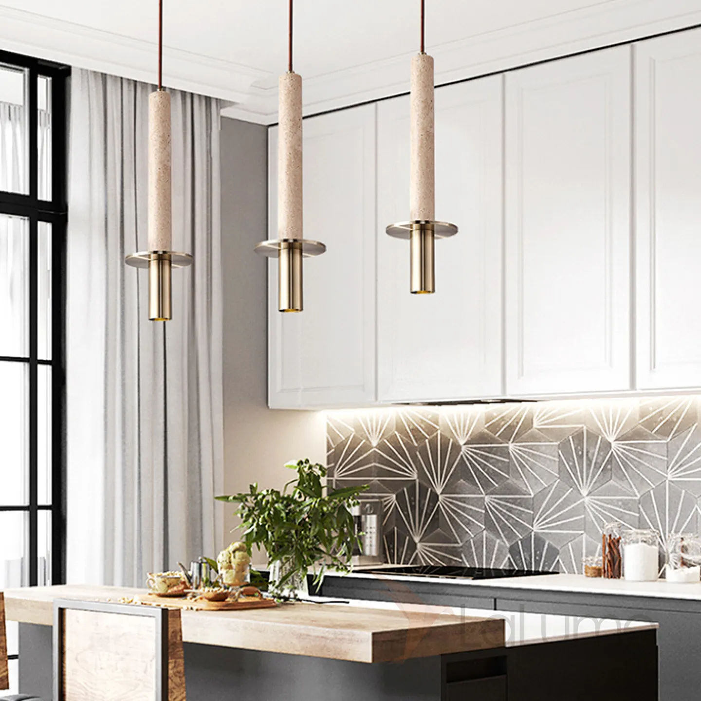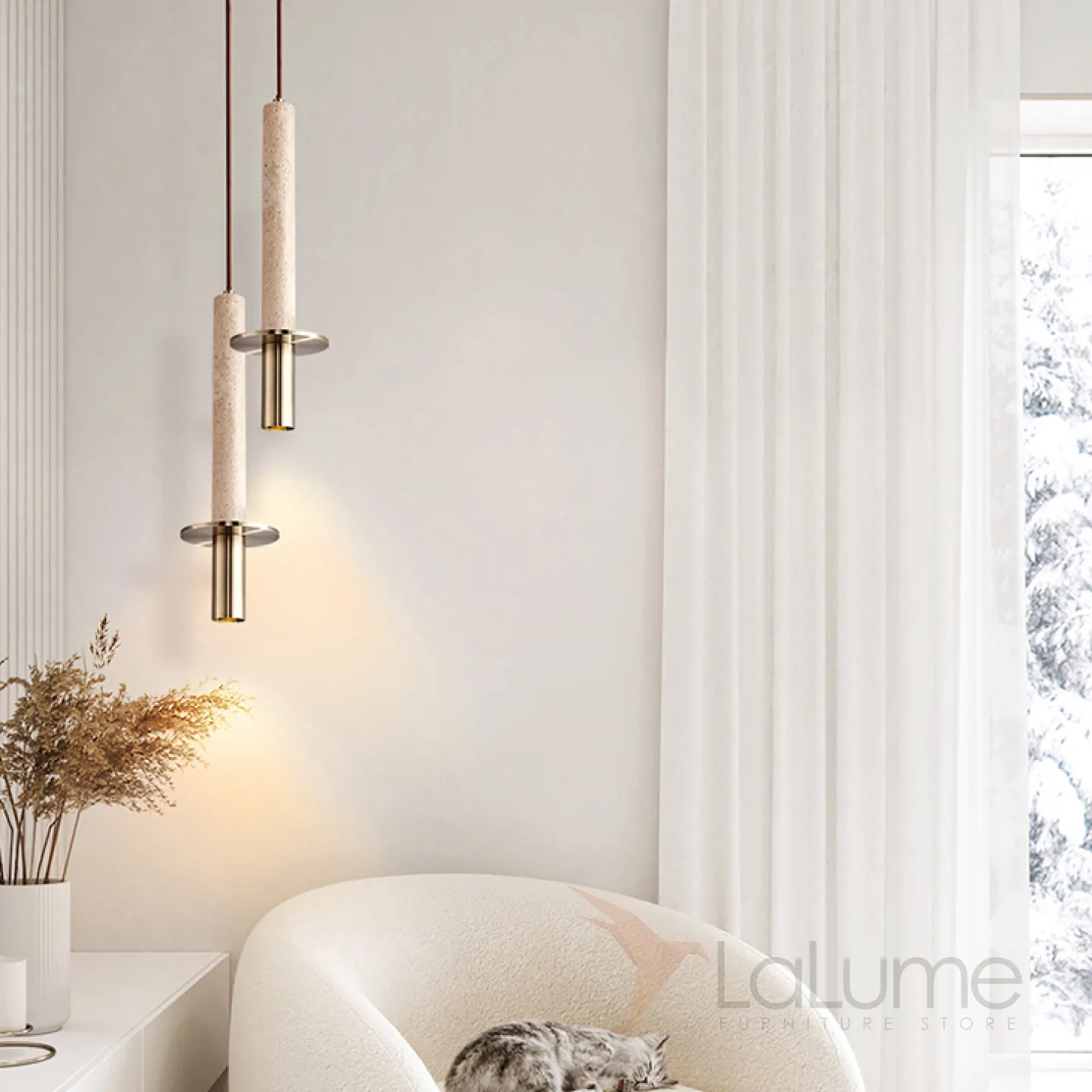 Готовая комбинация подвесных светильников с цилиндрическим корпусом из лавового камня и травертина с дисковидным рассеивателем HAGBART DUO Black
