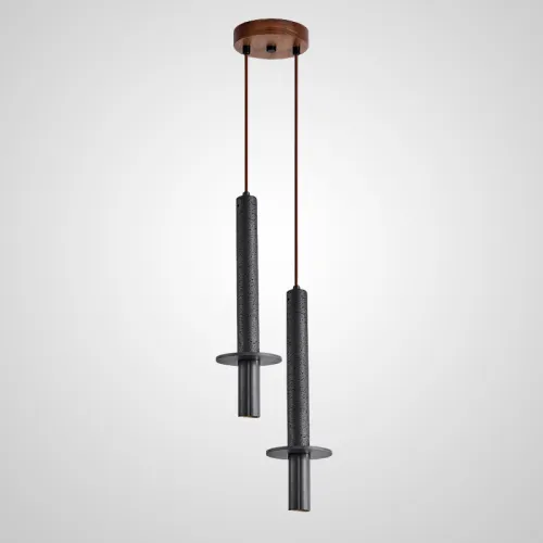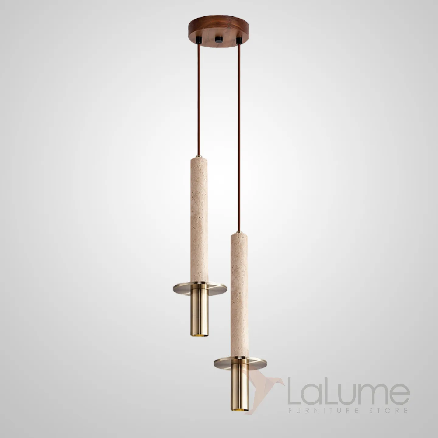 Готовая комбинация подвесных светильников с цилиндрическим корпусом из лавового камня и травертина с дисковидным рассеивателем HAGBART DUO Brass