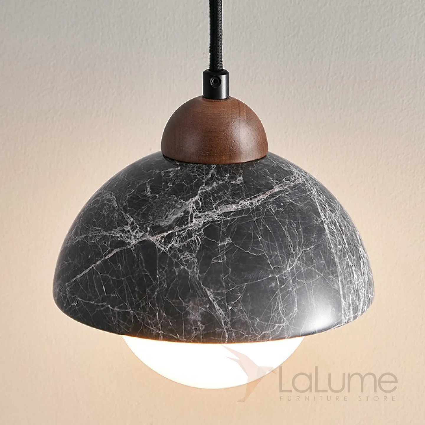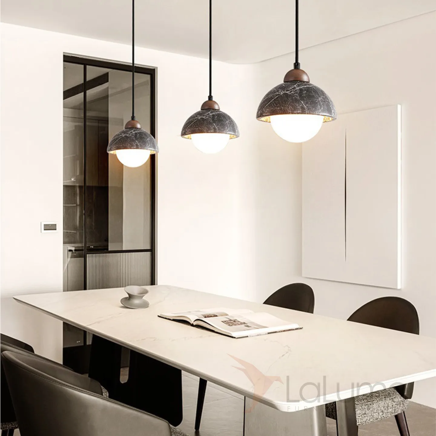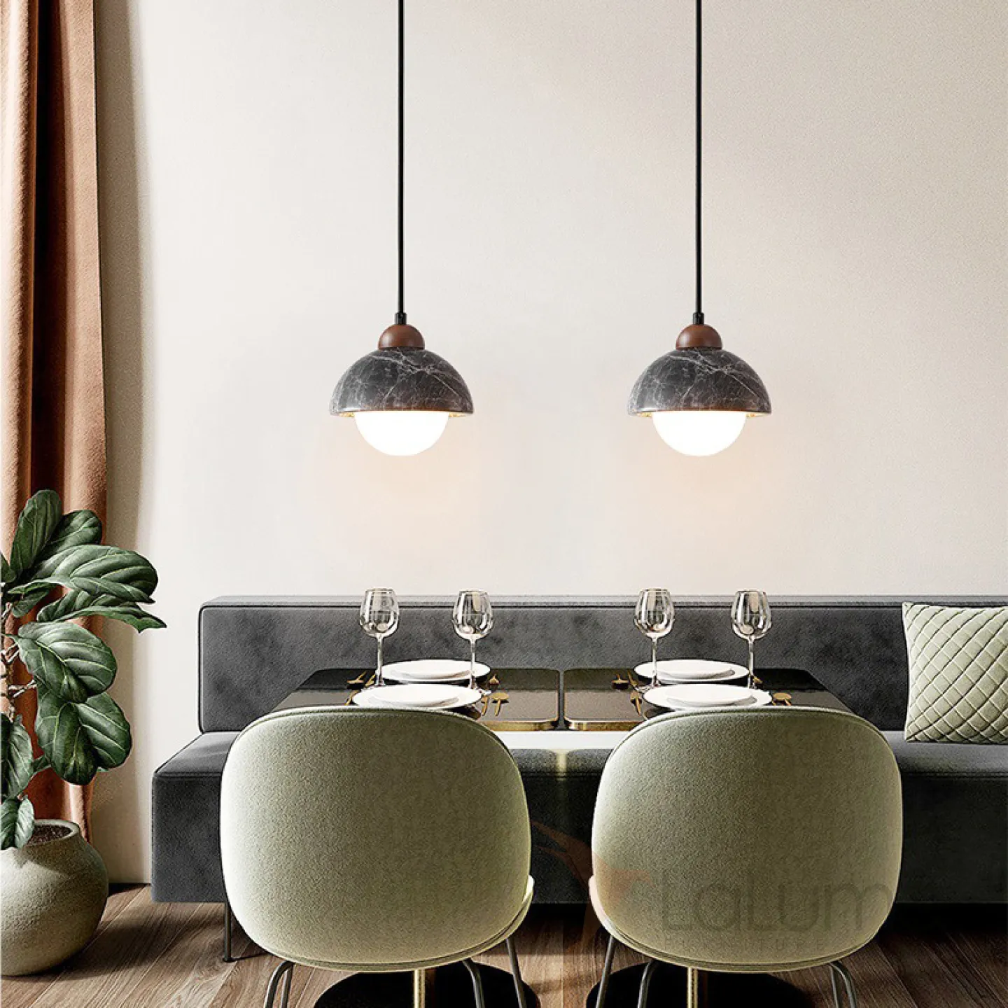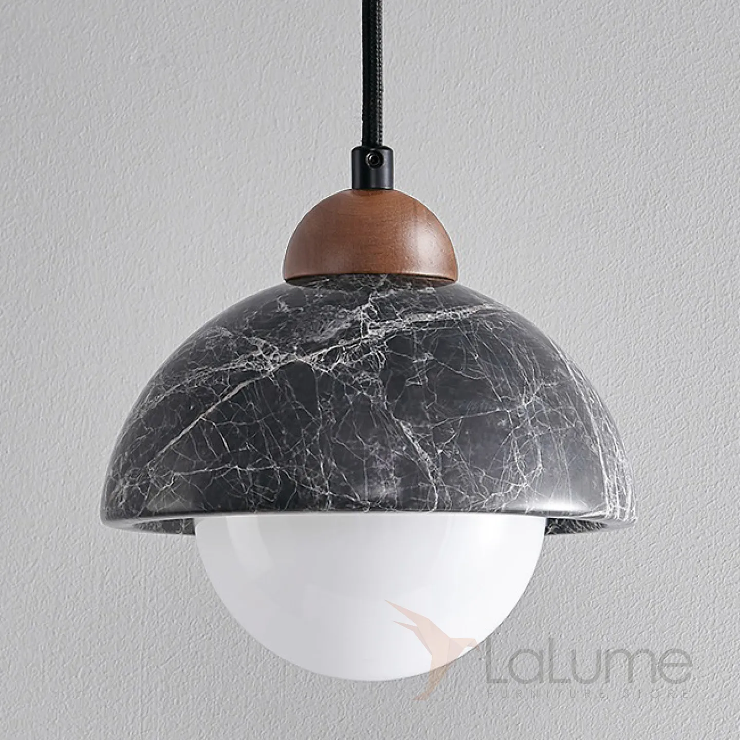 Готовая комбинация подвесных светильников с шарообразными плафонами и комбинированными абажурами из мрамора и дерева GEHARD COMBO D30