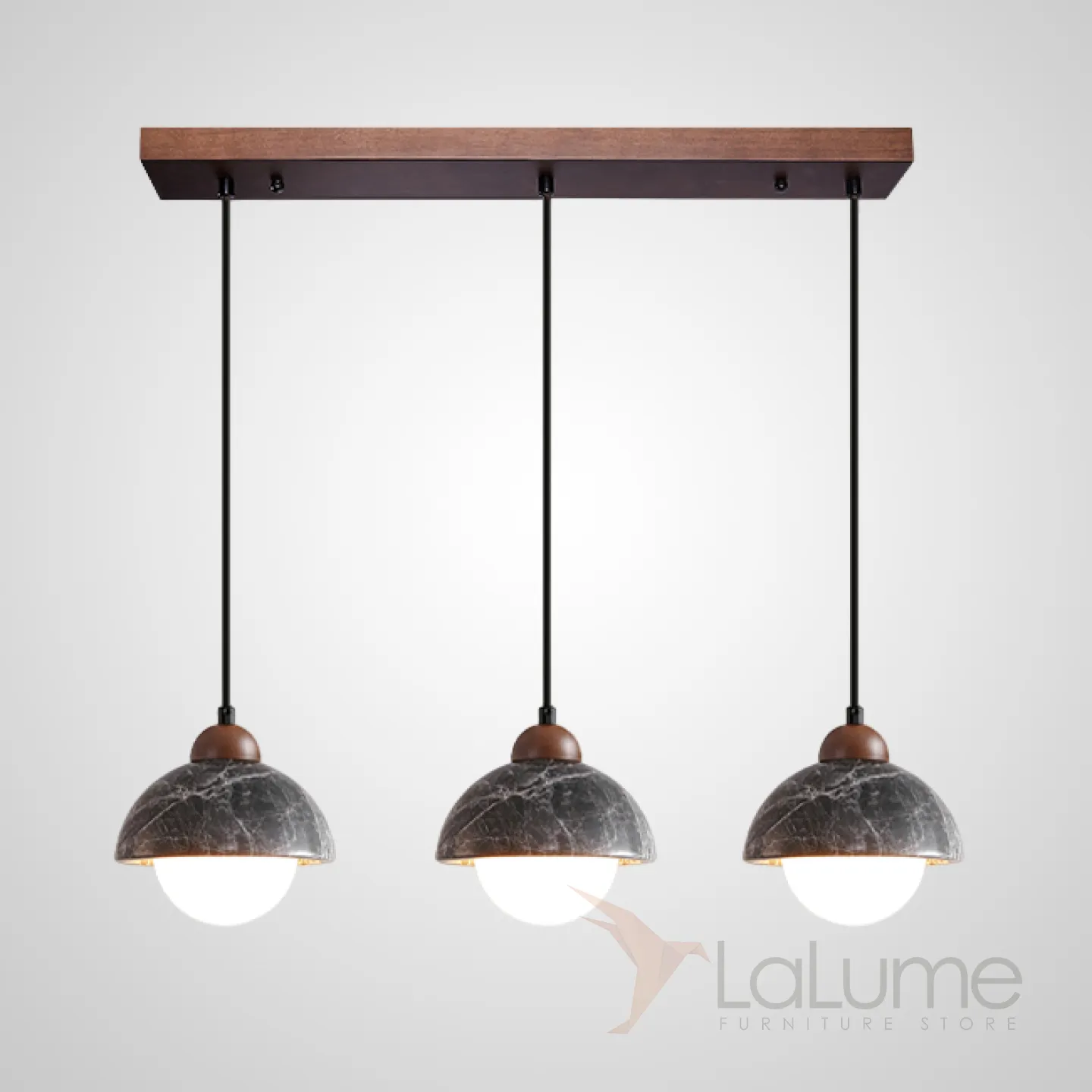 Готовая комбинация подвесных светильников с шарообразными плафонами и комбинированными абажурами из мрамора и дерева GEHARD COMBO L60