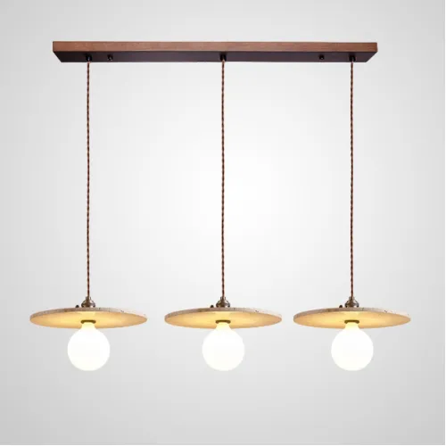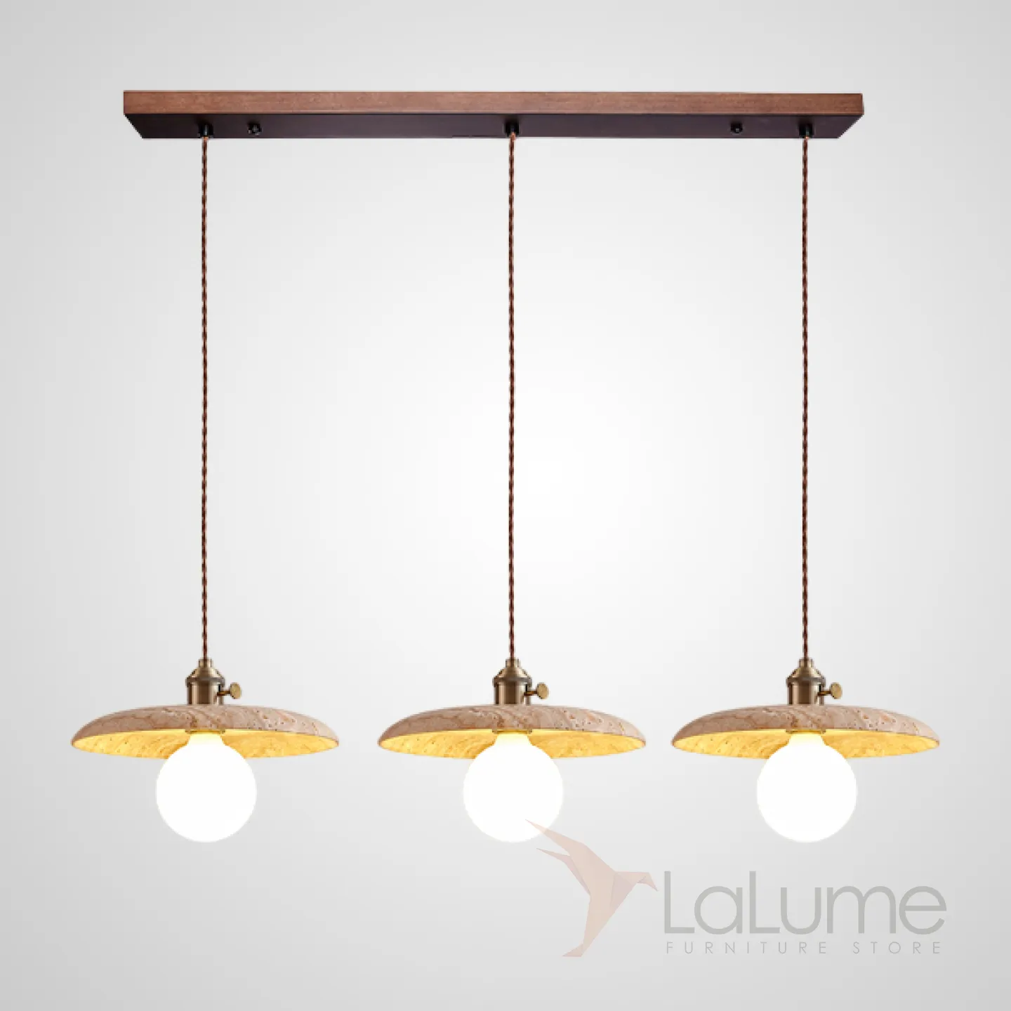Готовая комбинация подвесных светильников с тремя дискообразными абажурами из камня травертин OSSIAN TRIO B