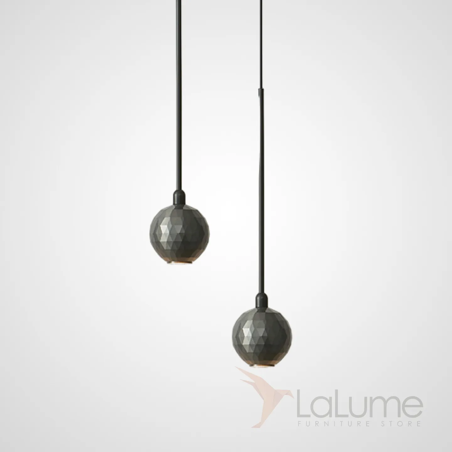 Готовая комбинация подвесных светодиодных светильников с шарообразным корпусом с рельефной ромбической текстурой ORVAR DUO Black