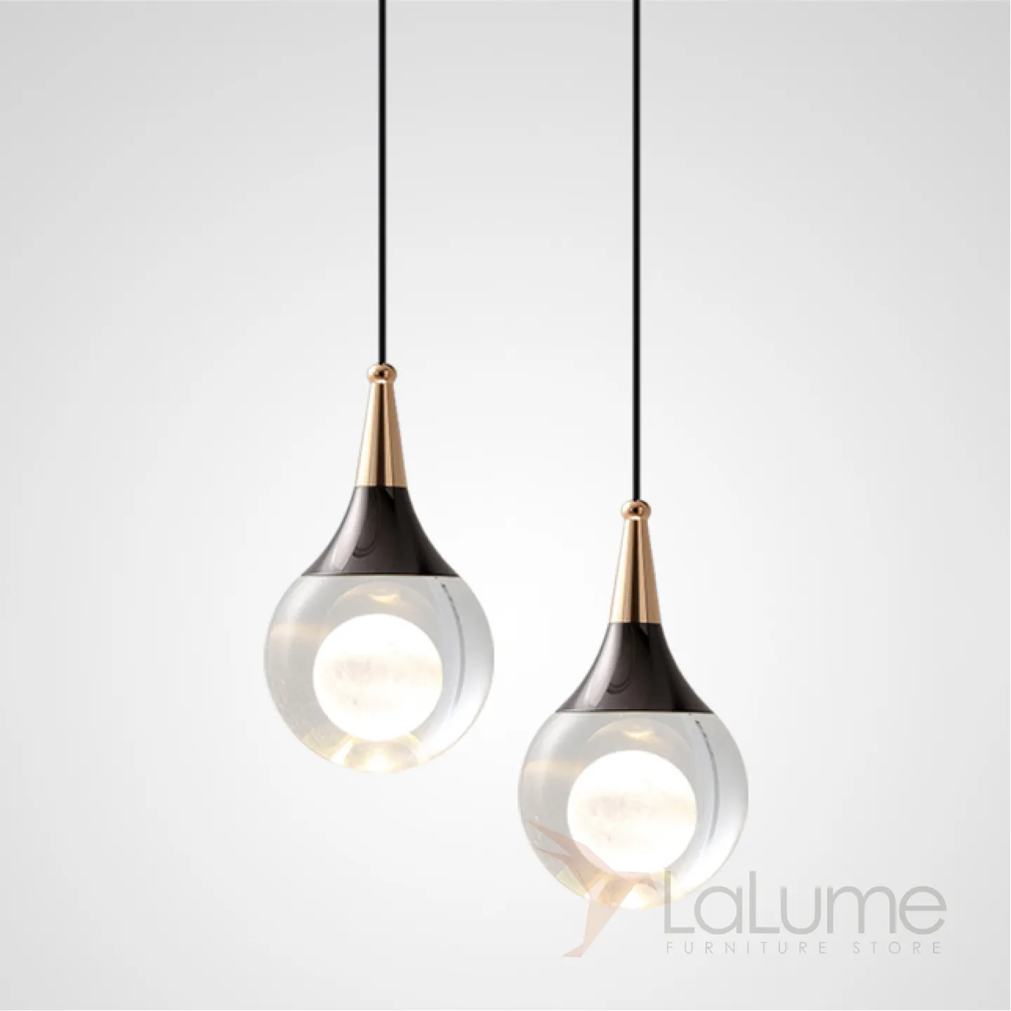Готовая комбинация подвесных светодиодных светильников с лазерной гравировкой внутри шарообразных хрустальных рассеивателей SOFUS DUO B
