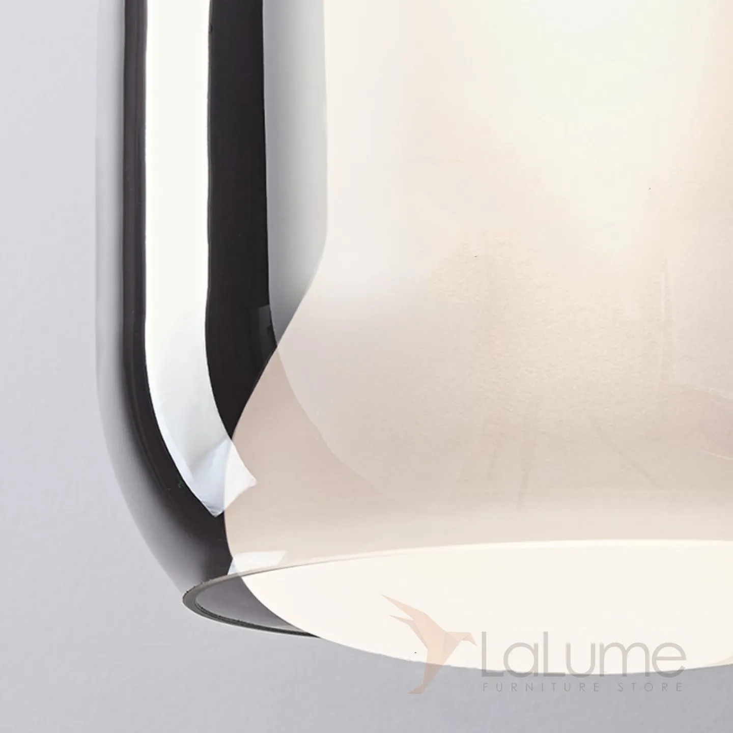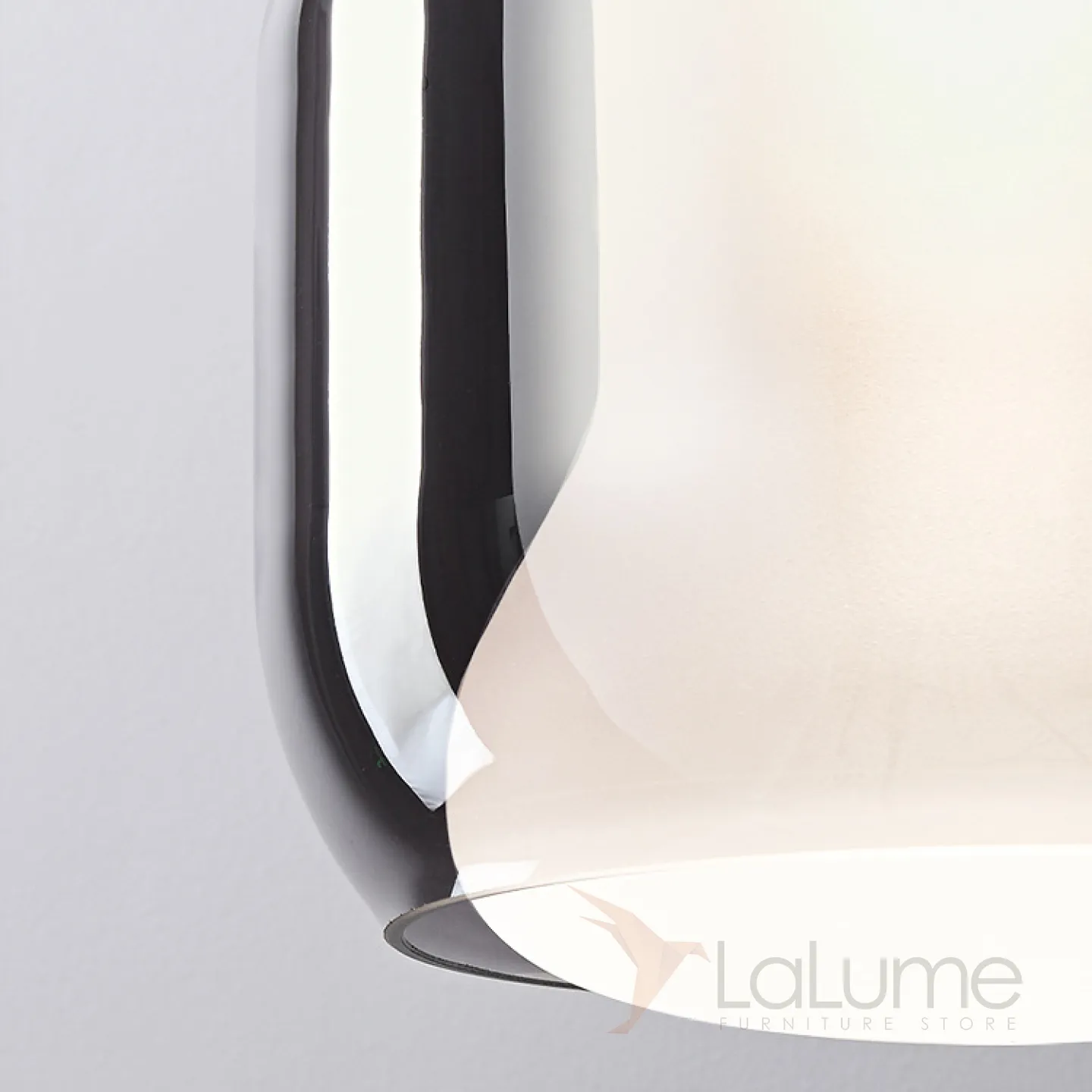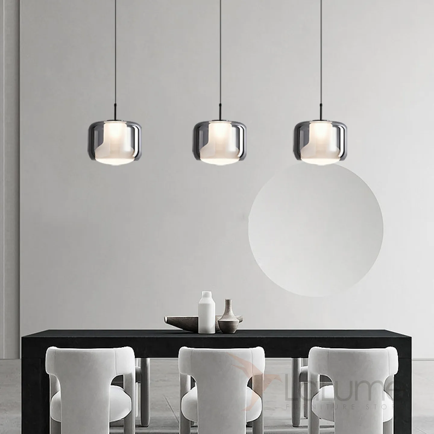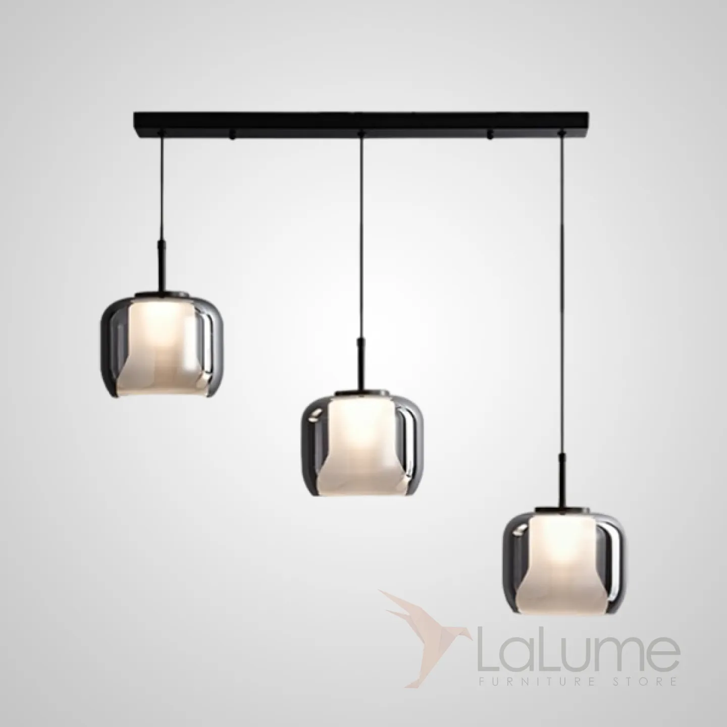Готовая комбинация подвесных светодиодных светильников с белым трапециевидным корпусом в цилиндрических абажурах из дымчатого стекла GERALD TRIO