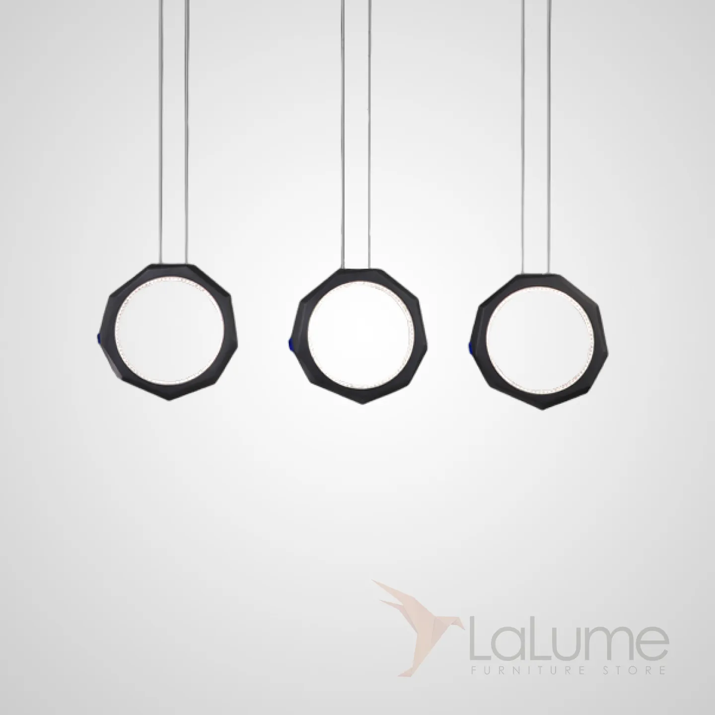 Готовая комбинация подвесных светильников с внутренней LED-подсветкой и декоративным стеклянным камнем на кольцевом корпусе NILSIGNE COMBO L109 Black