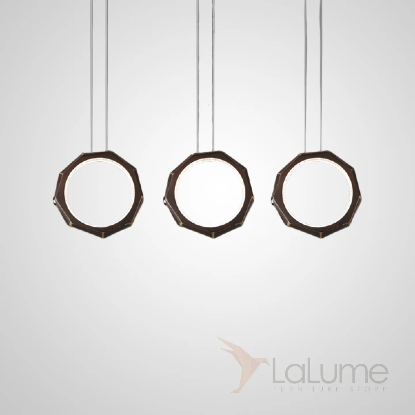 Готовая комбинация подвесных светильников с внутренней LED-подсветкой и декоративным стеклянным камнем на кольцевом корпусе NILSIGNE COMBO L109 Brown
