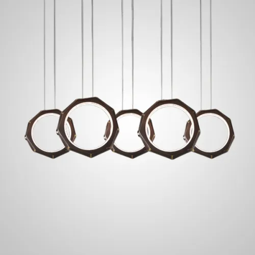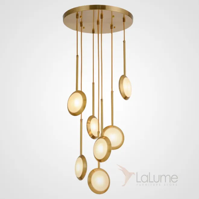 Готовая комбинация подвесных светильников с внутренней LED-подсветкой и декоративным стеклянным камнем на кольцевом корпусе NILSIGNE COMBO L109 Brass