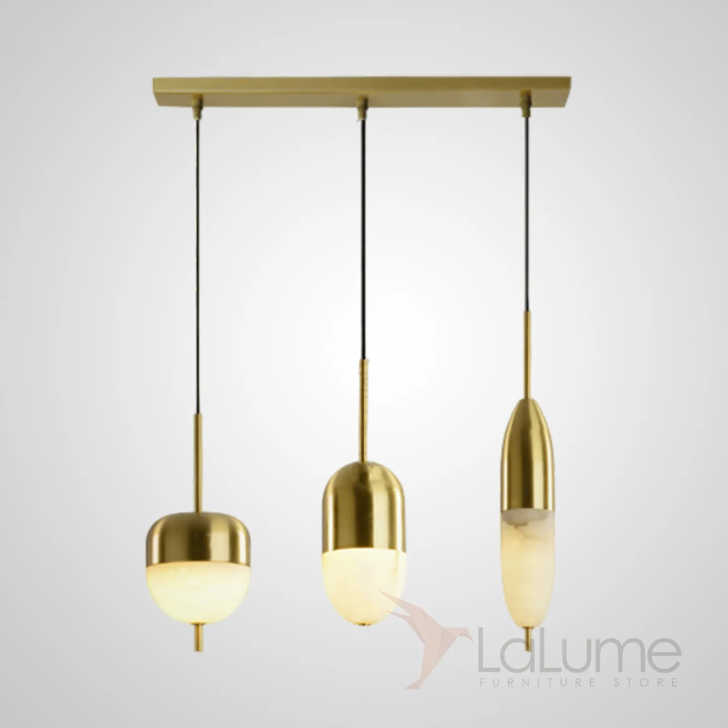Готовая комбинация подвесных светодиодных светильников с тремя округлыми плафонами из натурального белого мрамора MALLE TRIO L60