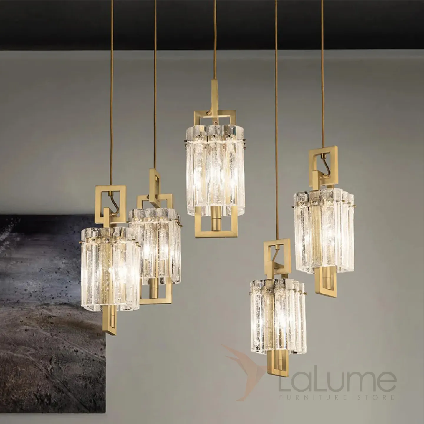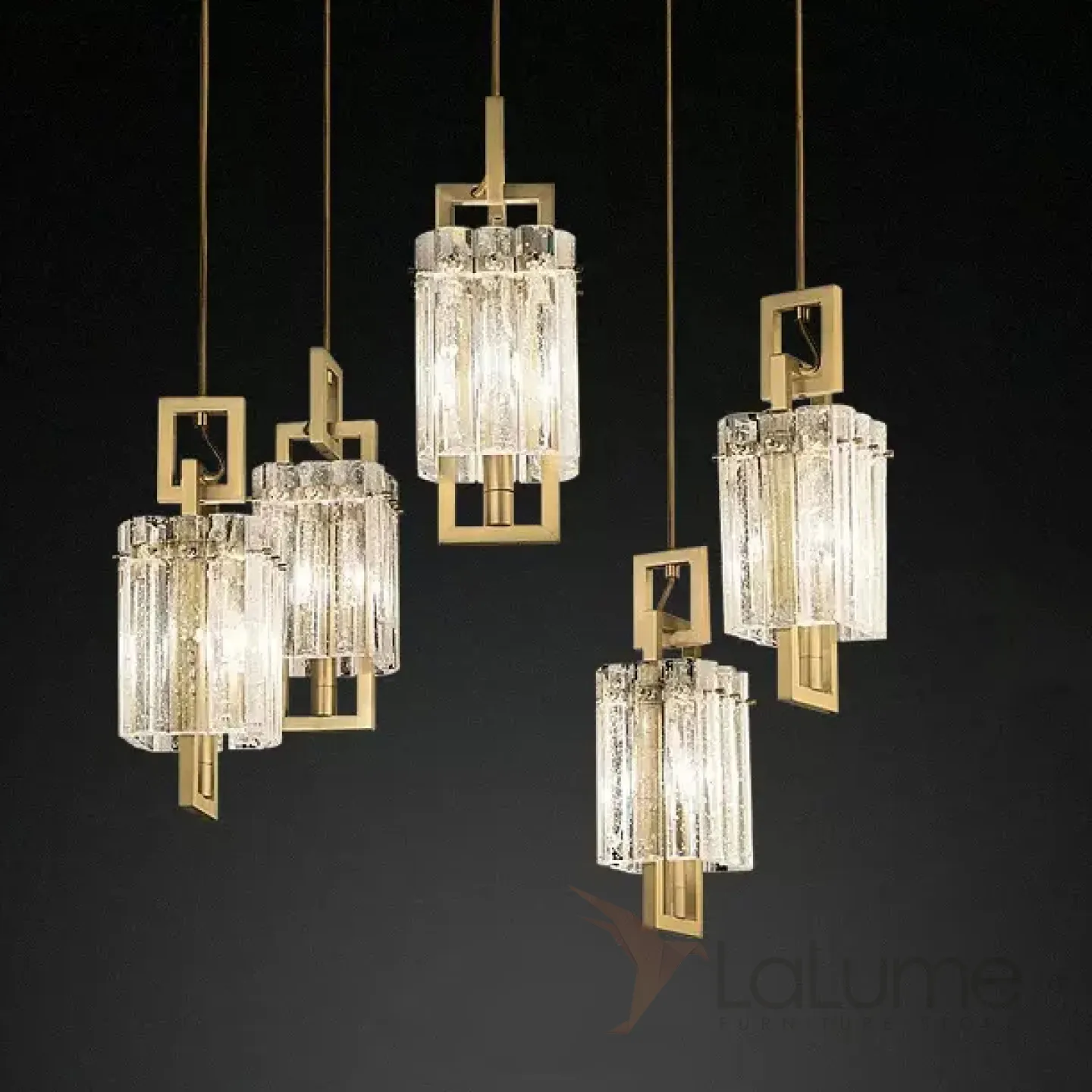 Комбинация подвесов с прямоугольными плафонами из хрустальных пластин с эффектом льда на металлической раме BENNA COMBO