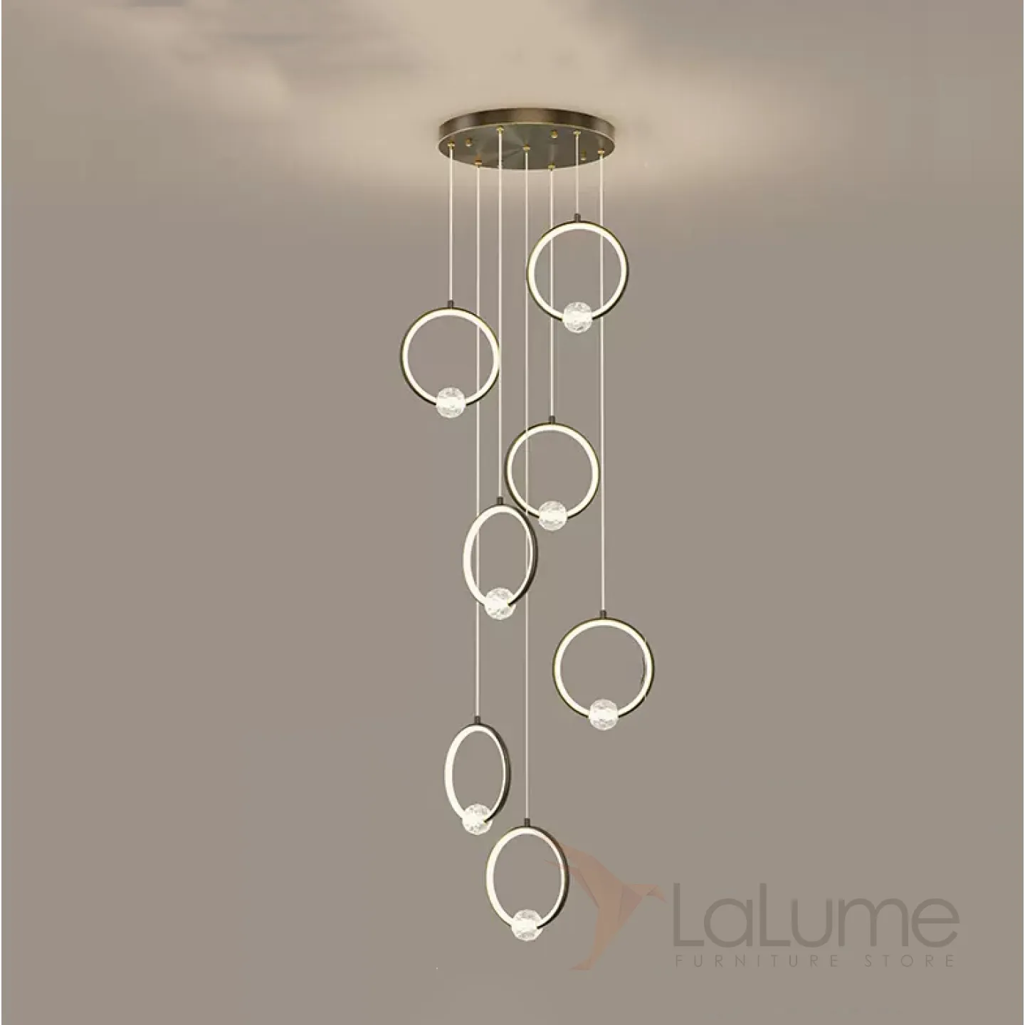 Готовая комбинация подвесных светильников с шарообразными хрустальными плафонами на металлических кольцах с внутренней LED-подсветкой LUANA MORE L7 Black