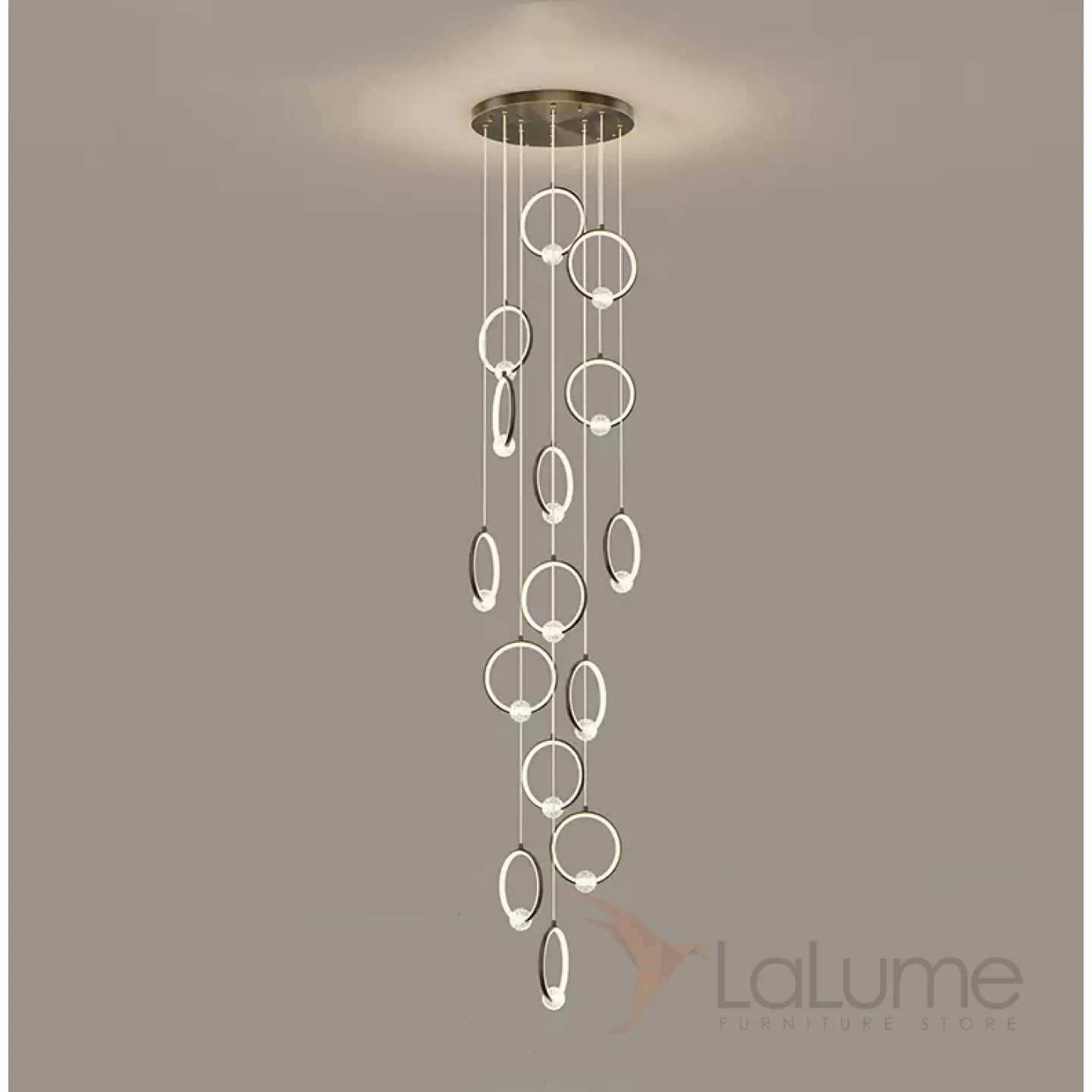 Готовая комбинация подвесных светильников с шарообразными хрустальными плафонами на металлических кольцах с внутренней LED-подсветкой LUANA MORE L15 Black