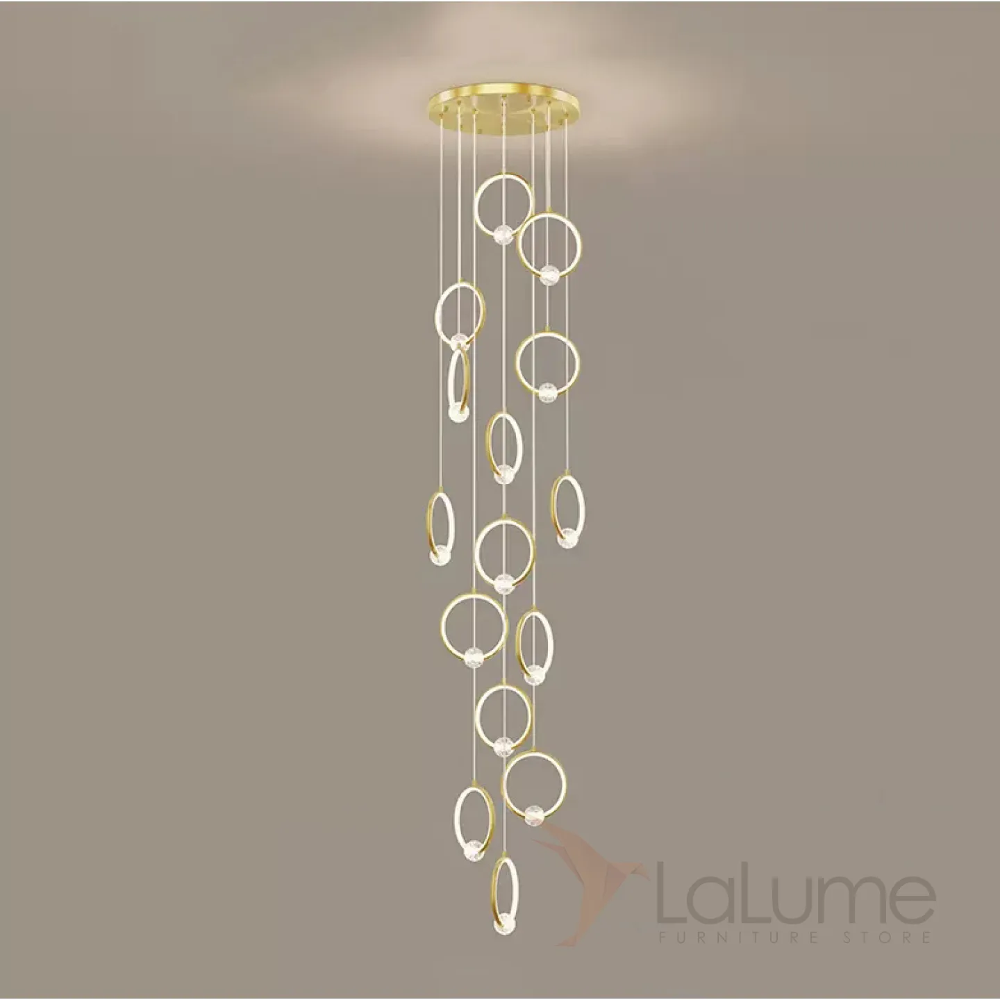 Готовая комбинация подвесных светильников с шарообразными хрустальными плафонами на металлических кольцах с внутренней LED-подсветкой LUANA MORE L15 Brass